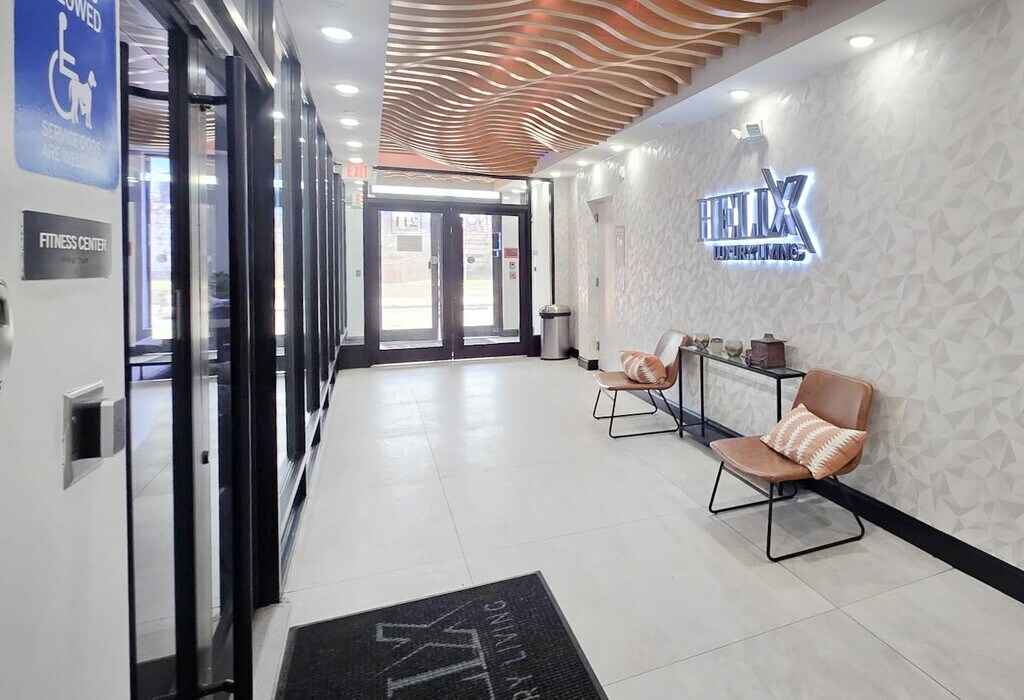Welcome to The Helix, Luxury Building offering an upscale lifestyle with rooftop views of New York. Residents enjoy an array of premium amenities, including a fitness center, game room, Lounge, and more. The building is close to restaurants, local Cafes, transportation, high school and college, and a Hospital, providing effortless everyday living. The apartment features one spacious bedroom with a walk-in closet, a gourmet kitchen with top-of-the-line appliances, ample counter space, a living room, and an in-unit washer and dryer. Garage Parking (depending on availability) for $250/month. Pets welcome $600 p/ year