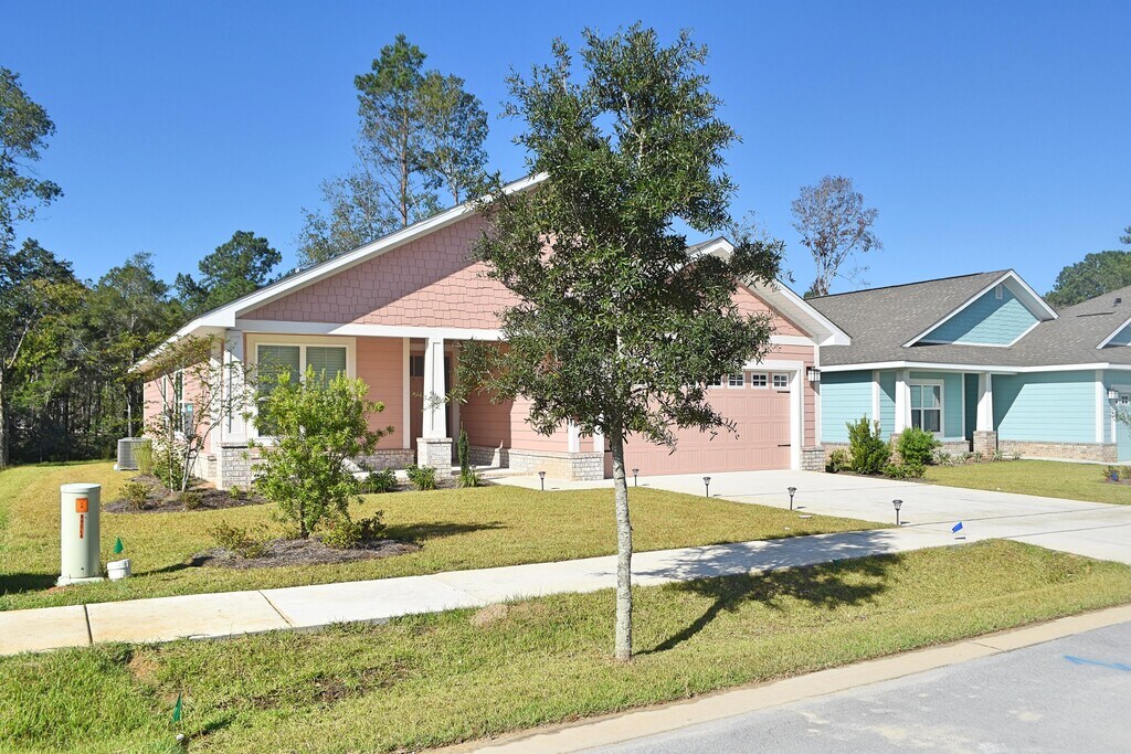 Available in Lafayette Creek Landing, 4 bedroom 2 bath Craftsman style Cottage located off of Marquis Lane behind the Publix shopping center at the SE intersection of HWY 331 and HWY 20. Eat in kitchen as well as separate formal dining. Luxury Vinyl Plank flooring throughout. Granite Countertops. 2' Blinds. Covered back lanai overlooks green space preserve for added privacy. Stainless Steel Refrigerator, Gas Range, Dishwasher, and built in Microwave included. Natural gas hook up for grill on back of the house. Split bedroom floor plan. Separate tub and shower in Primary bedroom. Garbage included.