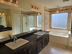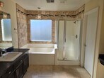 Lovely 2 story home renovated home ready for move in! Interior features two tone interior paint , kitchen with island breakfast bar, all appliances, luxury wood like vinyl plank flooring; ceiling fans throughout, cozy fireplace in the family room, spacious primary bedroom, primary bath with dual sinks separate tub and shower, and makeup vanity. Patio in rear with mature landscaping!