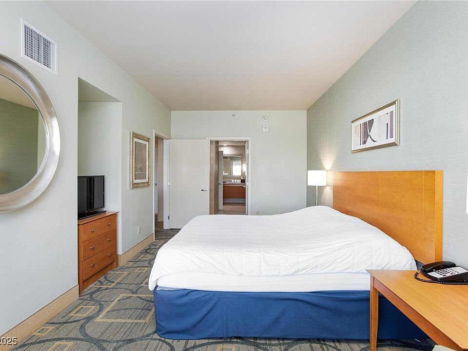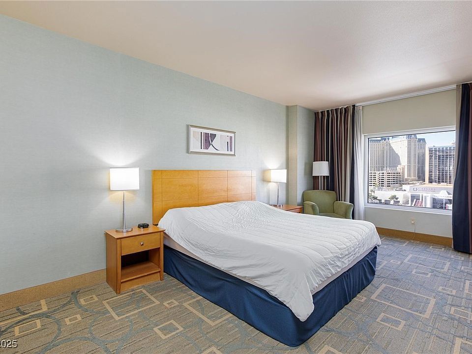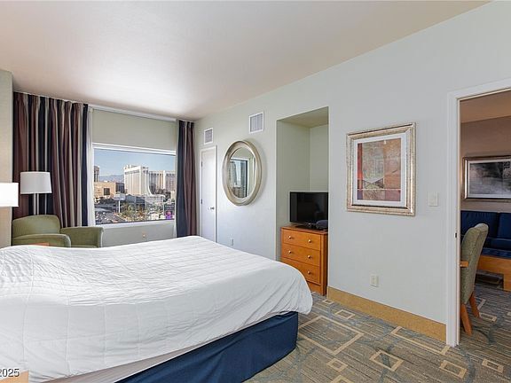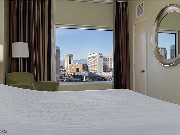 Get ready to feel the excitement of Formula 1 in this stunning west facing unit, offering breathtaking Strip views and of the F1 race track. This spacious 1-bedroom, 1-bath residence features a full-size kitchen, breakfast bar, and comfortable living area, with dazzling Las Vegas Strip views visible right from your king-size bed. Enjoy exceptional on-site amenities including a business center, in-room dining, lobby bar, concierge, guest parking, a fitness center, and year-round heated indoor/outdoor pools. Located just minutes from the Las Vegas Strip and the F1 Paddock Building and Pits,