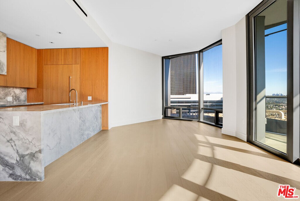 Experience elevated Westside living in Residence 16B at the prestigious Century Plaza Park Elm, showcasing sweeping city skylines and glimmering ocean views through dramatic 10-ft tall floor-to-ceiling windows. This refined 2-bedroom, 2.5-bath home features an open layout, a modern chef's kitchen, and a private terrace perfectly positioned to take in sunsets over the Pacific. The Snaidero-designed kitchen is equipped with Miele appliances and a custom slab waterfall island, blending sleek design with exceptional functionality. Both bedrooms include en-suite baths and generous closet space. Residents enjoy world-class amenities including a resort-style pool, state-of-the-art fitness center, steam-equipped locker rooms, screening room, library, game room, personal wine storage, private dining rooms, guard-gated entry, and 24-hour concierge service. A sophisticated high-rise lifestyle minutes from Beverly Hills and Century City's best. Virtual tour: . Virtual staging used. MLS# 25627435