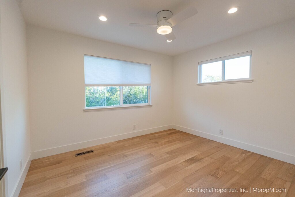 Beautifully updated 4 bedroom, 2 bath, one story ranch style house on a large lot in amazing Los Gatos neighborhood! Features include: Completely remodeled inside and out in 2024! Beautiful tree lined street with views of the mountains. Long driveway leads up to oversized 2 car garage with quiet automatic door and epoxy floors. Formal entry with inviting front porch, double doors and large skylight. Amazing kitchen and open concept living room. Kitchen boasts large center island with stainless double basin sink, high-end stainless Thermador appliances, skylight, pantry and custom cabinetry. Appliances include dishwasher, built-in refrigerator, 6 burner gas range, oven and Thermador exhaust hood. The house has gleaming hardwood and tile floors throughout. Living room has gas fireplace with remote, large windows and three sets of glass double doors to access the backyard. In the back you will find a patio area, professional low maintenance landscaping and plenty of space to entertain or relax. All 4 bedrooms have ceiling fans and recessed lighting. Both bathrooms are beautifully updated. Hall bath with shower over tub. Primary bathroom has spacious walk in glass shower. Fully finished attached garage. Central heating and AC. Nearby top-rated schools include Rolling Hills Middle School and Marshall Lane Elementary The location is perfect for easy access to restaurants, shopping and freeways as well.