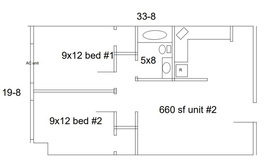 - 2BR, 1BA