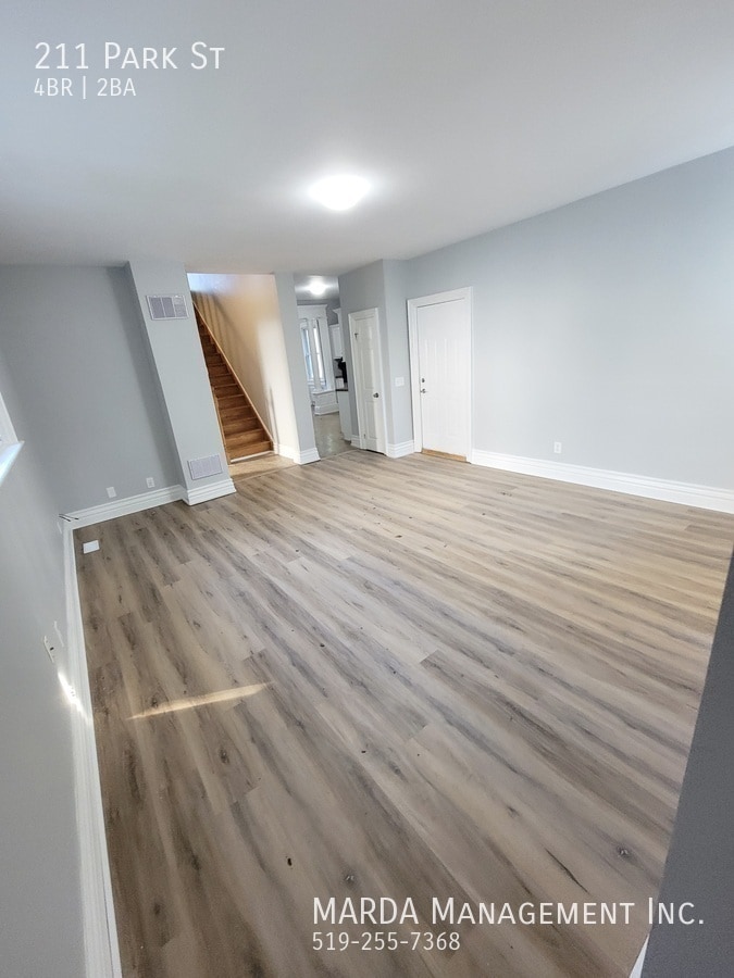 Welcome to 211 Park, a spacious 4 bedroom, 2 bathroom home in Chatham, perfect for families looking for comfortable living with a functional layout. The main floor features an open concept kitchen and dining area, equipped with a fridge, stove, and dishwasher, offering plenty of space for everyday use. Just off the kitchen is a large family room/living room area, ideal for relaxing or entertaining. Also on the main level are two bedrooms, both full bathrooms with tub/shower combos, and a laundry room with in-unit washer and dryer for added convenience. Upstairs, youll find two loft-style bedrooms, providing flexible living space for family members, guests, or a home office. This home includes central air conditioning and sits on a large fully fenced quarter-acre lot (approximately 200 ft deep), offering plenty of outdoor space. Enjoy the spacious backyard, large deck, and a large front porch, perfect for relaxing or entertaining. Tenants are responsible for hydro, water, gas, lawn care, and snow removal. One-year minimum lease. First and last months rent and a credit check are required. Professionally managed by MARDA Management, offering 24/7 maintenance support with a live agent and easy, convenient rent payment options. Call MARDA MANAGEMENT today at or email to schedule your viewing. Fenced Back Yard Front Porch Laminate Flooring No Smoking Allowed Pet Friendly