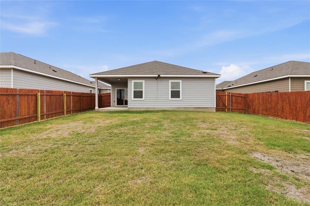This well kept 3 bedroom, 2 bath single-family home offers a functional layout and a convenient location with quick access to I-35, shopping, dining, and local amenities. The open-concept living area provides comfortable flow into the kitchen and dining spaces, creating an easy setup for everyday living. The primary suite includes a walk-in closet and private bath. Two additional bedrooms offer flexibility for guests, work-from-home needs, or hobbies. A separate laundry area and an extended garage with additional storage space add extra convenience. Outside, the property features a spacious backyard with no back neighbors, offering added privacy and a peaceful outdoor setting.