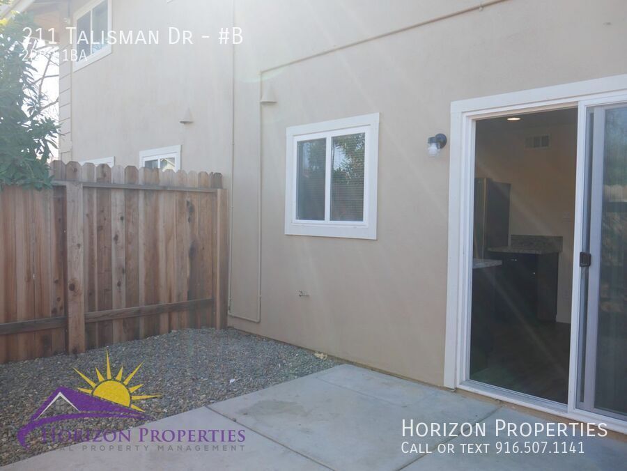 Please click on a photo above to see all photos. Rental Qualifications and Policies for this property: • FICO score of 695 or higher • Income of three times the rent • No evictions nor open bankruptcies • Owner will not accept a cosigner • Security deposit must be received within 24 hours of approved application unless other arrangements are made in advance • Must take possession of the property within two weeks of approved application • One small dog under 25lbs. or one cat, $45 a month pet rent and breed restrictions. • No smoking or vaping of any kind is allowed in the home or building • Tenant pays $100 flat rate towards water, sewer and trash • Available with a nine-month lease term Near E. Natomas St and Fargo Way in Natomas Heights, Folsom, this remodeled, two-story fourplex offers two bedrooms and one full bathroom. This home has laminate on the first floor and carpeting on the second floor, central heat and air conditioning, dual pane windows with mini-blinds and verticals, six panel door with security door, recessed and overhead lighting throughout 900 square feet of living space. The living room has laminate flooring, recessed lighting and a single door closet. The dining room has laminate flooring, recessed lighting and a slider to the rear yard. The kitchen has laminate flooring, espresso cabinets with under-cabinet lighting, granite counters and back-splash and is equipped with: • stainless steel, frost-free refrigerator with French doors • gas range with oven • stainless steel dishwasher • stainless steel sink with convertible faucet and garbage disposal Both bedrooms are located upstairs. The first bedroom has overhead lighting, two double door closets and one single door closet. The second bedroom has overhead lighting and a double door closet. The remodeled bathroom is located upstairs, features a larger than normal tub with a stone surround, complimented by a vanity topped with polished granite. Features a private, fenced, spacious patio, including owner provided gardening service. Coin-op laundry (including washer and dryer) is provided in secure, clean environment behind and attached to the building. This unit is located near public transportation; picturesque, historic Folsom; and within desirable, Folsom Cordova Unified School District. • Yard maintenance is owner responsibility. As we are first-come first-serve on application processing, you may wish to apply immediately if you think you want to rent this property. We strongly encourage you to view the property prior to completing an application. Security deposit must be received within 24 hours of approved application unless other arrangements are made in advance. You must take possession of the property within two weeks of your approved application. If you have any questions or would like to make sure you meet the minimum criteria for this property, please call prior to applying. We do business in accordance with all State and Federal Fair Housing All listing information is subject to change. Cal DRE Broker #00948825 Cal DRE Corporate #01957496 ***Please, do not disturb the residents.*** Central Heat & Air Frost Free Refrigerator On Site Shared Laundry Room