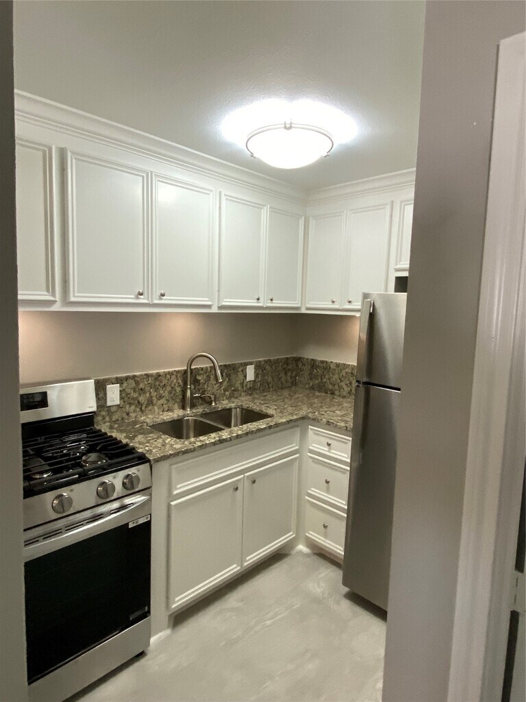 Recently renovated upstairs 1/1 in a Houston Heights eight-plex. The access gates to the courtyard open to outstanding appointments just inside the door! Gorgeous solid granite countertops in the kitchen and bath give a modern-day nuance to the old heights charm. Recent nickel hardware and a stainless steel gas range,with air fry and self-cleaning features,add the perfect touch to a culinary kitchen. A one year old stainless-steel refrigerator with automatic ice maker adds detail. This unit boasts gray laminate floors,fresh gray paint,and crown molding throughout! An updated bath with tub/shower combo offers convenience with a recessed accessory shelf. Contemporary lighting,a modern round mirror and an extra wall shelf add details. The unit is equipped with a recent energy efficient Friedrich wall A/C and gas wall heater. Desirable off-street parking for one car is off the back-alley way. There is added convenience with a coin operated laundry room. MLS# 64714583