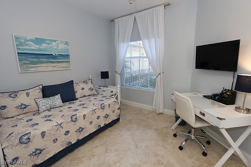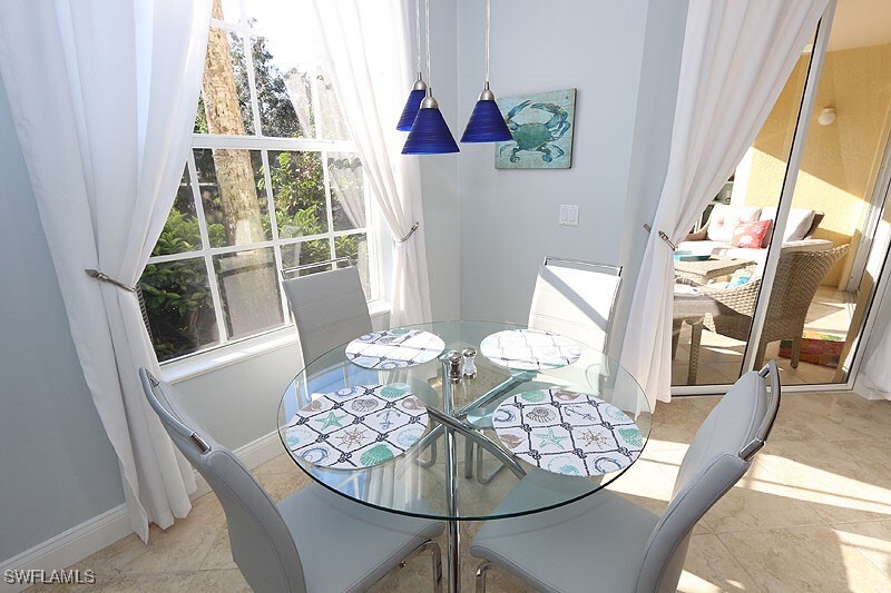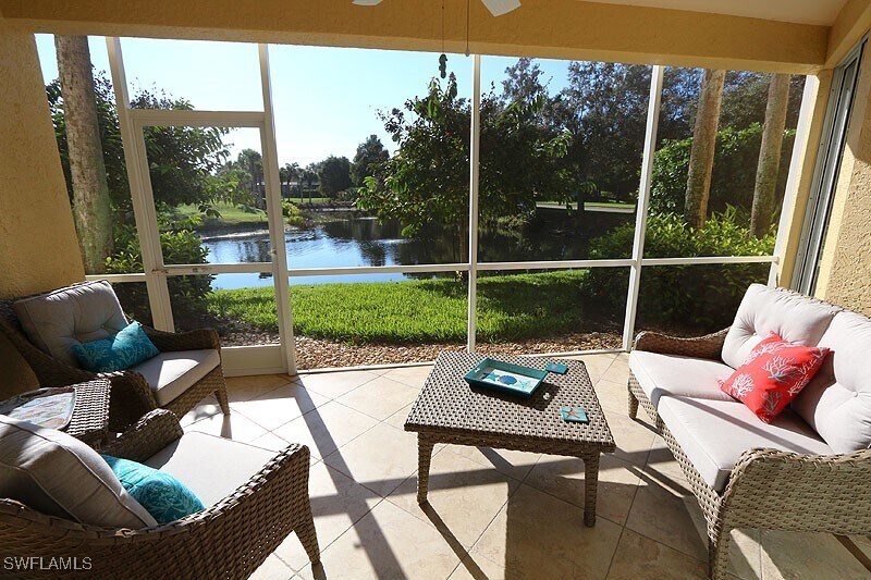 Exceptional first floor coach home in Arielle at Pelican Marsh! Southeastern exposure with gorgeous views of lake and golf course. Fresh and stunning,this residence is spacious with two bedrooms,two baths,a den and screened lanai. Beautifully updated to include granite counters,stainless appliances,custom cherry cabinetry in the kitchen & baths plus all new modern upgraded electronics. Porcelain tile on the diagonal and upgraded lighting fixtures throughout. Tray ceilings with crown molding in the foyer & dining room. All new furnishings in coastal,beach and casual Florida styles set in a palette of new soothing neutral paint colors. Every creature comfort has been provided to make a tenant's stay more convenient and enjoyable. Amenities to Arielle include a heated pool & spa. Enjoy the amenities of Pelican Marsh including an extensive exercise facility known as the "Inspiration Studio",tennis club,social Foundation and security guarded gated entry. This premier community is conveniently located to fine shopping,dining and entertainment,which includes the Mercato located just to the south of Pelican Marsh's main entrance,and is just a quick drive to the beach.