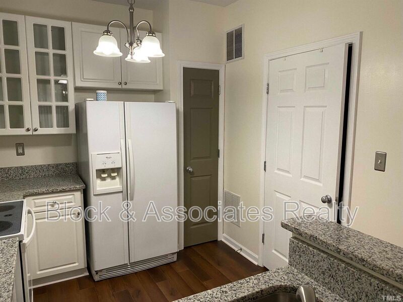 Available 11/20/25! Great first floor condo in convenient North Raleigh Location. Common area has luxury vinyl floors. Kitchen has granite counters and all appliances. Carpet in the large master suite. Master bath with dual vanity, garden tub and separate shower. Gas log fireplace in family room and separate dining area. Washer/Dryer included. Porch with extra storage. Pets negotiable. Community pool included. Ask for details on Tenant Benefit Package. Welcome Home! Please see Block & Associates website at for most accurate property details, photos, and application.