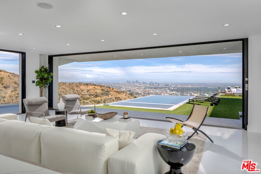 Situated atop Mount Olympus in the Heart of Hollywood Hills this Modern luxury newly built Masterpiece displays extraordinary jetliner views from Downtown Los Angeles to Century City, Catalina Island and beyond. Great for entertaining open floor plan w/ cinema, living, dining, family area all with Floor-to-ceiling fleetwood glass doors to enjoy the panoramic views, & the indoor outdoor entertaining. The private oasis back yard consist of a spectacular infinity pool and spa both overlooking the city of Angels. Master chef's kitchen w/ center island w/ calacatta marble & state of the art appliances. The second floor features three bedroom suites including a master suite with incredible dual walk-in closet, romantic fireplace, a spa-like master bath with bathtub overlooking the breathtaking views of city lights. An expansive rooftop terrace where guests can lounge at the built-in bar. Automated smart home with 2-car garage. Enjoy this one of a kind dream homes & Hollywood Hills Lifestyle! MLS# 25594717