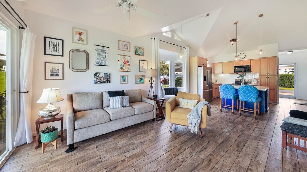 Introducing Regency at Huleia, Unit 120 — Now Available for Rent Experience island living in this beautifully furnished 2-bedroom, 2.5-bath townhome located in the heart of Lihue. This bright and airy two-story residence offers a thoughtful floor plan with large windows that fill the space with natural light. The main level includes a stylish kitchen, comfortable living area, half bath, master bedroom with private bath, convenient in-unit laundry, and air conditioning for year-round comfort. Upstairs features a second bedroom, full bath, and a generous storage closet—perfect for keeping your space organized, however no AC in upstairs bedroom (yet). Every 2 bedroom townhome includes a 1 car garage but there is additional parking on property for other vehicles or guests. As a resident of Regency at Huleia, you’ll also enjoy access to the community pool, creating a relaxing retreat just steps from your front door. Situated well off the roadway this unit is quiet and peaceful. Centrally located with easy access in either direction to North or South shores. A 5-7 minute drive to the airport or hospital. Walking distance to Hokulei Shopping Village, Costco, YMCA and Chiefess Kamakahelei Elementary School. Hawaii Life will require proof of income 3x that of rent, a minimum credit score for all adults of 650 or higher. We will run a full background screening and credit check upon applying. But PLEASE DO NOT APPLY without contacting the Property Manager first. All emails will be responded to, please be patient, follow the Property Managers responses/questions and we can move you through the steps of pre qualifying. This is a long term rental, a 1 year lease is preferred that can be extended. Sorry no pets allowed.