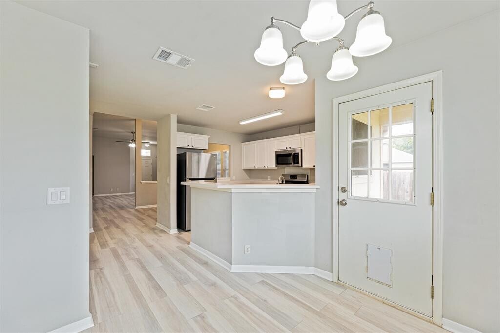Located in the Ridge at Steeds Crossing community, this well-maintained single-story home offers a comfortable and functional layout with three bedrooms and two bathrooms. NEW HVAC, NEW water heater, and a NEWLY updated guest bathroom add valuable updates to the home. Vinyl flooring runs throughout the main living areas, creating a durable and cohesive space for everyday living. The living room features a cozy fireplace and flows easily into the formal dining room, providing flexibility for both daily meals and entertaining. The kitchen includes stainless steel appliances, a breakfast bar for casual seating, and an eat-in dining area that brings in natural light and offers plenty of room for gathering. The primary bedroom features a vaulted ceiling and a private en suite bathroom with a dual vanity and a soaking tub/shower combination. Outside, the covered back patio overlooks a fenced yard, offering a great space for relaxing, grilling, or enjoying time outdoors. A Culligan water softener is included, and the owner provides lawn care twice per month as well as pest control for added convenience. Refrigerator and dryer convey “as is.†Conveniently located near shopping, dining, and major roadways, this home offers both comfort and accessibility in a growing North Austin area. Schedule a showing today! MLS ID 4467497