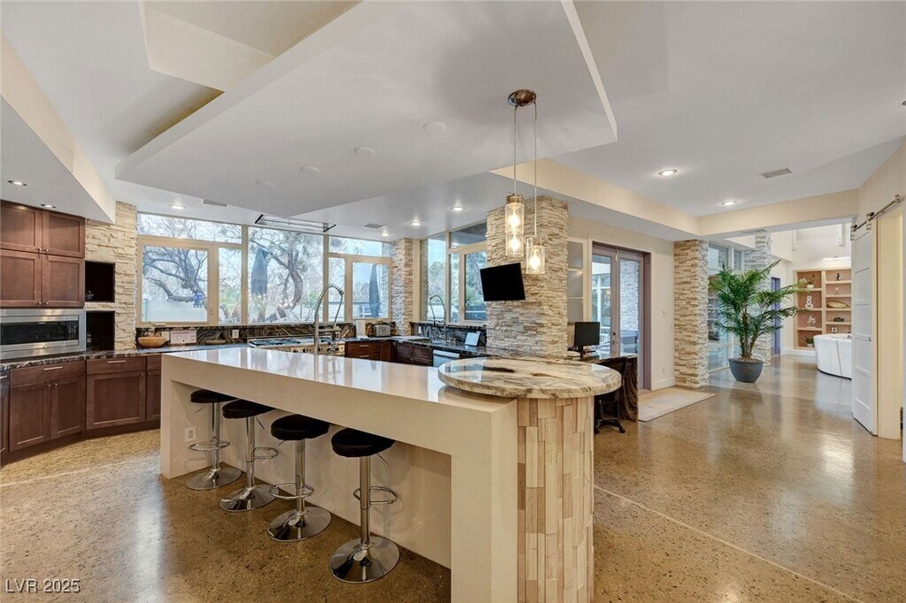 Brian HartsellDrive through the private iron gate and enter into this massive estate over 8000 sq ft. You will be greeted by vaulted ceilings with an airy and open feel. This is a luxurious custom home only 10 minutes from the famous strip which makes it a great escape for the perfect combination of fun and relaxation. This home is completely furnished and turn-key ready. It features pool automation, gym, theatre, billiards table, firepit, oversized BBQ, children s climbing wall and playground. Sewer, trash, Wi-Fi and pool cleaning are included. Home is available for a minimum of 6+ months rental.