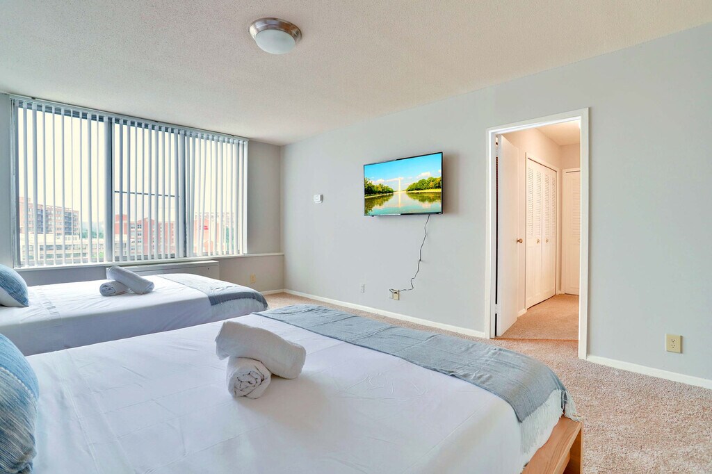 Experience the perfect blend of comfort, style, and convenience in this modern Arlington apartment. Located in the vibrant neighborhood of National Landing, this home offers the ideal stay for business travelers, families, and extended visits, just minutes from Washington, D.C. Enjoy easy access to Crystal City and Pentagon City Metro stations, and take advantage of the proximity to the Fashion Centre at Pentagon City and Reagan National Airport. This beautifully furnished apartment is designed to provide a warm and welcoming atmosphere, offering everything you need for a comfortable and stress-free stay. Inside, you'll find a bright living room with a sofa bed and Smart TV, perfect for relaxing after a day of exploring. The apartment features two queen-size beds in one bedroom, a comfortable queen bed in another, and a full-size bed in a cozy den. The fully equipped kitchen has all the essentials to cook your favorite meals at home, and there are two full bathrooms for convenience. An in-unit washer and dryer ensure hassle-free laundry, and high-speed Wi-Fi keeps you connected throughout your stay. Welcome to National Landing, one of the most exciting and convenient areas in Arlington. This vibrant neighborhood includes Crystal City, Pentagon City, and Potomac Yard, each offering something special. Crystal City is lively with restaurants, cafés, shops, and local parks, while Pentagon City boasts the Fashion Centre at Pentagon City, a top shopping mall. Potomac Yard offers green spaces and scenic walking and biking trails. You're only minutes from downtown Washington, D.C., with easy access to metro stations, highways, and Reagan National Airport, making transportation smooth and flexible. All guests must be registered prior to arrival with a valid government-issued ID for building access. Unregistered guests are not permitted, and failure to provide this information in advance may result in cancellation of the reservation. The property is located in a residential building, so please keep noise to a minimum to respect neighbors. Check-in is at 4:00 PM and check-out is at 11:00 AM. Late check-out must be requested at least 24 hours in advance, is subject to availability, and has an additional cost. Unauthorized late check-out will result in a charge equivalent to one night's stay. The HVAC system is centralized and operates according to city regulations and seasonal cycles. Unauthorized parties and smoking indoors will incur a $300 fine. A damage waiver fee is included to cover accidental damage up to $300, provided it is reported during your stay. Lost FOB or access card incurs a $250 charge, and lost parking tag ranges from $200 to $300 based on building rates.