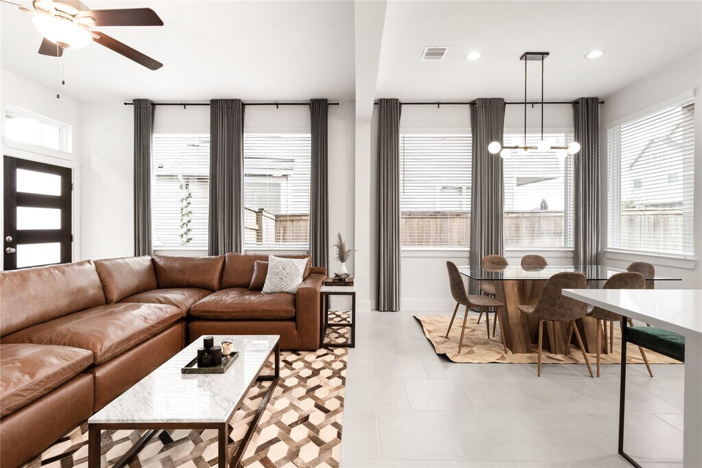 FANTASTIC BRAND NEW 3-Bedroom,2.1-Bath townhome in award-winning Bridgeland. Never lived in,with modern finishes,high ceilings,and abundant windows. Spacious backyard for relaxing. First floor features tile throughout and recessed lighting. Kitchen has white cabinets,a stylish island,and stainless steel appliances; fridge and washer/dryer included. Offered fully furnished for a turnkey move-in. All bedrooms are located upstairs,including an oversized master suite. Plus,there's a loft area,perfect for a study or office. Available immediately—don’t miss out on this fantastic opportunity to be the first to call this beautiful townhome your home in Bridgeland! MLS# 41965722