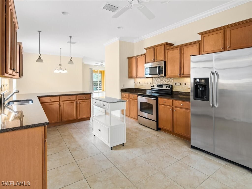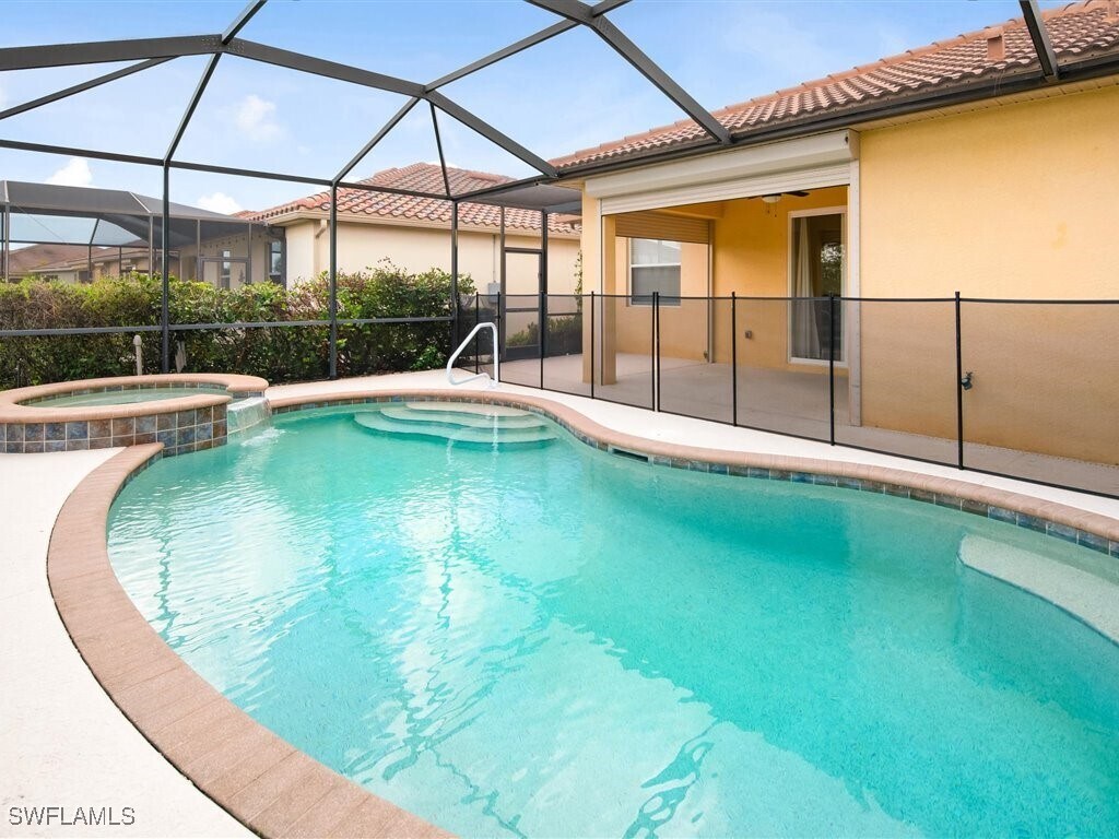 Available for ANNUAL UNFURNISHED LEASE! Not for Sale! This Single Family POOL/SPA home is available and ready October 1st for move in. Pet friendly,no aggressive breeds allowed. Fresh paint and garage floor,pressure washed roof and driveway and landscaping. Stainless steel appliances,tiled floors in living and dining room and all wet areas and kitchen. Recent upgrades include Interior paint job,crown molding throughout,screened in front porch,tile backsplash in the kitchen,electric hurricane shutters on the back lanai,impact resistant front entry door,and gutters around the entire perimeter of the house. Bella Terra has amenities for everyone which include a resort style community pool and spa,fitness center,inline skating,tennis courts,playground,pickleball,bocce,basketball,sand and water volleyball,a library,community room and lots of special events and activities. There are walking and biking trails throughout the community. Come and enjoy the beautiful lifestyle that Bella Terra has to offer. Bella Terra is conveniently located near Miramar Outlet Mall,SW Fl Int'l Airport and Gulf Coast Town Center. EASY TO SHOW! One dog OK with non refundable pet fee.
