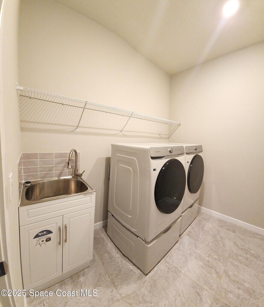 This beautiful 3bed/2bath + office home is beautiful,clean,bright,and ready to be called ''Home''. The location is close to major highways,a straight shot north on Narcoossee Rd to Lake Nona,easy access to Orlando International Airport,a ride to the east to the beaches of Melbourne,I-95,and access to the Space Center,and more. Restaurants and entertainment are all around and easily accessible. This home comes with access to the community pool,a playground,and other amenities. The house has an open floor plan with tall ceilings and ceiling fans in the bedrooms. Tile flooring throughout the house and a nice touch of crown molding. The kitchen is beautiful with a large kitchen island,stainless steel appliances,and quartz countertops. The master bedroom features a custom closet and a great view of the backyard. The master bath has dual sinks,beautiful quartz countertops,and a large walk-in shower. The living room has custom blinds on the sliding glass doors that lead to the patio and a view of the trees,with no rear neighbors. Whole-house water softener. Exterior security cameras installed on property. Washer and Dryer are available for use by the tenant. Come and see this beautiful home in a great location. Make us an offer!