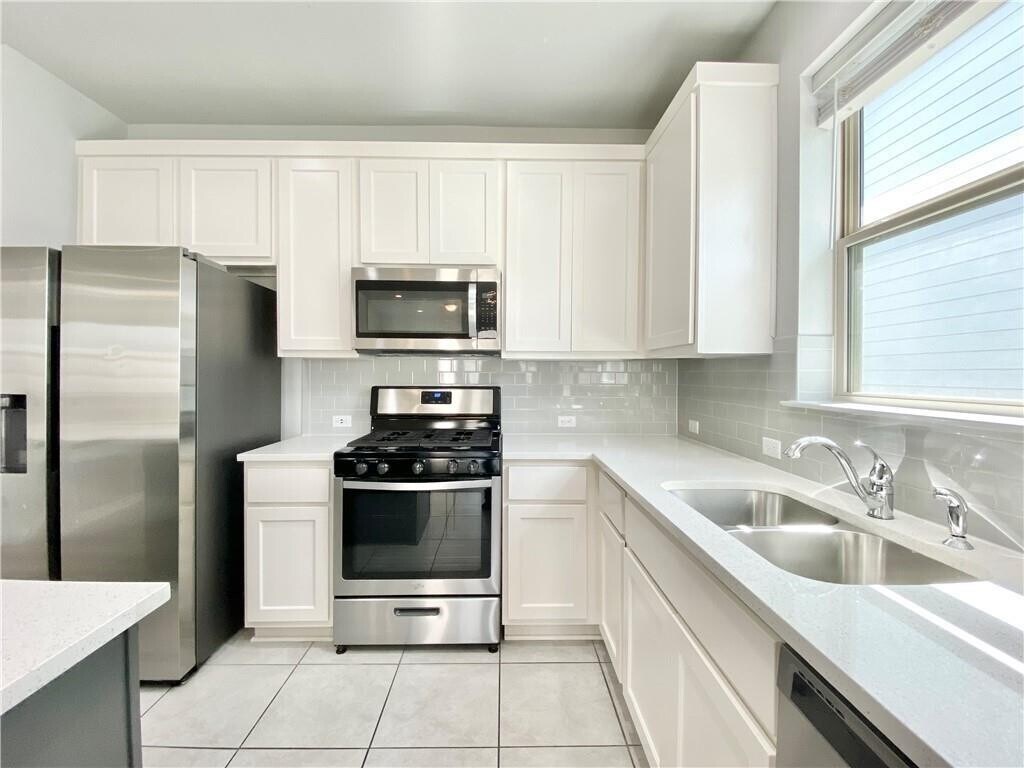 Prime location in one of Leander’s most desirable neighborhoods, featuring serene greenbelt views and mature oak trees that provide natural shade and charm. This inviting home offers a spacious covered front porch and a flexible fourth room off the entry—perfect for a home office, formal dining, or playroom. The kitchen is designed for both style and functionality, showcasing bright white cabinetry, quartz countertops, and stainless steel appliances—ideal for everyday living and entertaining. The private primary suite is thoughtfully positioned near the laundry room and includes a walk-in shower, generous closet space, recessed lighting, and high ceilings that enhance the home’s open feel. Enjoy the convenience of being just a short walk from Lakewood Park, offering amenities such as a splash pad, dog park, picnic areas, open green space, skate park, kayak rentals, and fishing piers. Located in a highly sought-after area with easy access to shopping, dining, entertainment, top-rated schools, and major roadways for a smooth commute. MLS ID 9657386