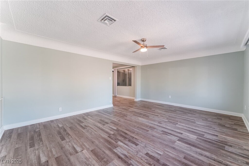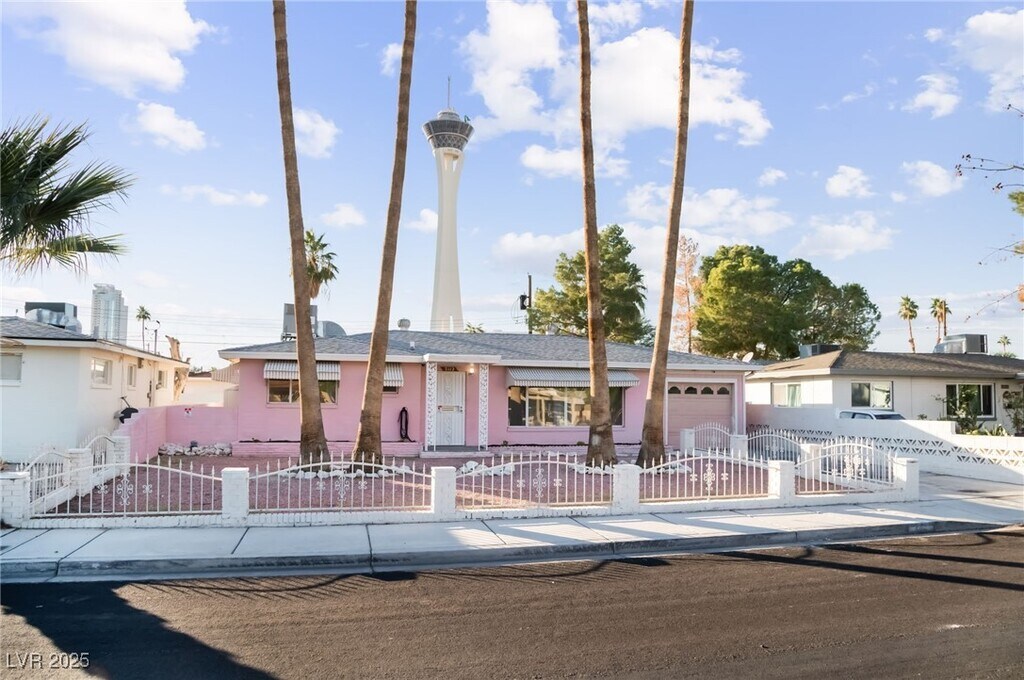 Discover this classic Las Vegas Charm–style single-story home with 3 bedrooms & 2 baths, plus a large casita with its own bath—ideal for multi-generational living, visiting guests, or a private studio space. Located in a prime Downtown Las Vegas location, this home is where convenience meets character in one of the city’s most iconic neighborhoods. Step inside to an open-concept floor plan enhanced by upgraded flooring and modern kitchen appliances, creating a warm and inviting living experience. A standout feature of the home is the expansive back room/flex space, highlighted by a stunning brick statement fireplace, perfect for relaxing or entertaining. The large backyard is made for outdoor living, complete with a covered patio, impressive Strip views, and generous space for gatherings, gardening, or even an outdoor fireplace setup. A single-car garage, rare for this community, adds valuable convenience and storage.