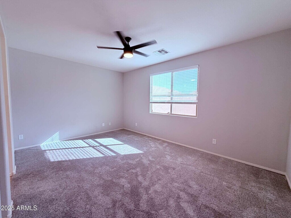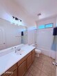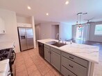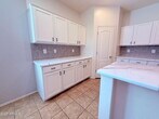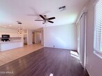 Three bedroom two bath single level home in Hastings Farms with about 1496 square feet and a bright open layout. Kitchen features updated cabinetry,solid surface style counters,pantry and center island that opens to the main living area. Split primary bedroom includes walk in closet and remodeled bath with walk in shower and dual sinks. Secondary bedrooms sit near the hall bath for privacy. Backyard offers an extended patio,artificial turf and a fire pit. Located close to Queen Creek Marketplace,Costco,area parks and local trails. Small dogs on approval,no cats.