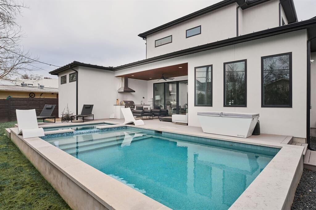 Experience luxurious living in this stunning home, perfectly situated in the heart of the sought-after Zilker neighborhood. Built in 2022, this modern home offers 4 bedrooms, 3 bathrooms, and a 2-car garage across an expansive 2,678 square feet of thoughtfully designed living space. Just steps from Little Zilker Park and Zilker Elementary, this home is ideal for those seeking convenience and community charm. Inside, you'll find natural wood flooring throughout, complementing the open-concept layout. The chef's kitchen is a true masterpiece, featuring waterfall-edge countertops, high-end appliances, and a full wine fridge – perfect for entertaining. The living room centers around a stunning fireplace, creating a cozy yet sophisticated atmosphere. Each bathroom showcases unique, stylish tilework, while the main-floor primary suite offers a spa-like retreat with an expansive shower, soaking tub, and impeccable finishes. Upstairs, a versatile flex room accompanies two additional bedrooms and a full bath, providing ample space for relaxation or work-from-home needs. Outside, expansive sliding doors open to a breathtaking backyard oasis, complete with a pool, spa, and sun shelf, a gorgeous deck, and a fully equipped BBQ area – perfect for enjoying the Austin sunshine. The 2-car garage is a dream, featuring epoxy flooring, extra storage space, and a full garage gym included with the rental. This home is a rare gem that perfectly blends style, comfort, and functionality. Don’t miss the opportunity to live in one of Zilker’s finest homes! MLS ID 7674425