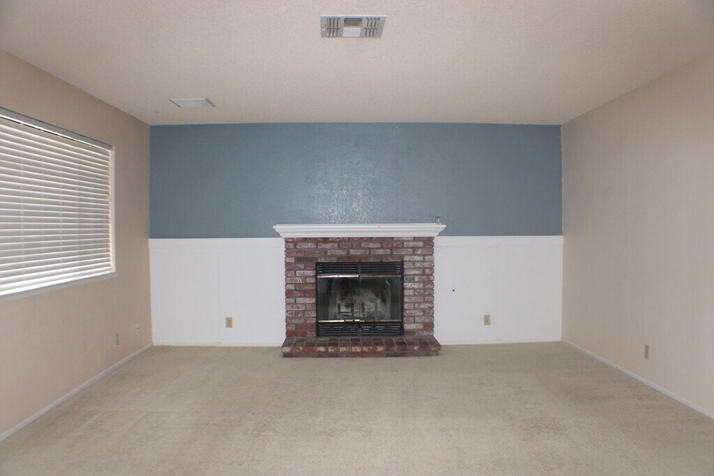 Welcome to this inviting 3-bedroom, 2-bath home designed for comfort and convenience. As you enter, you’re greeted by a cozy living room with a fireplace, perfect for relaxing evenings. The kitchen and dining area flow seamlessly together, featuring stylish light fixtures, a pet-friendly patio entry, and a sunlit garden window—ideal for your favorite plants. The kitchen comes fully equipped with a stove/oven, refrigerator, microwave, and dishwasher, making meal prep a breeze. All bedrooms are carpeted, adding warmth for the winter season, while the bathrooms shine with elegant finishes and originality. The primary suite includes a walk-in closet and a private bath with a walk-in shower and tasteful tile backsplash. Step outside to enjoy the expansive backyard, complete with plenty of space for leisure activities and an outdoor fireplace—perfect for s’mores nights. Additional features include an attached 2-car garage with washer/dryer hookups and appliances, plus central AC and heating for year-round comfort. Located within walking distance to city parks, restaurants, and retail stores, this home offers the perfect balance of relaxation and convenience. Contact Frontier at for more information.