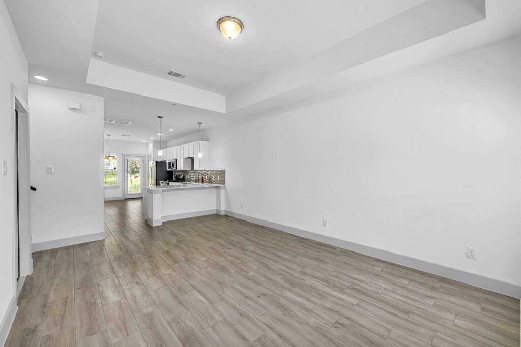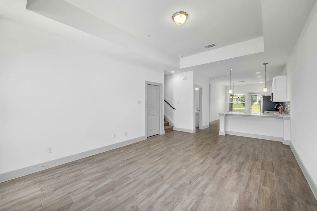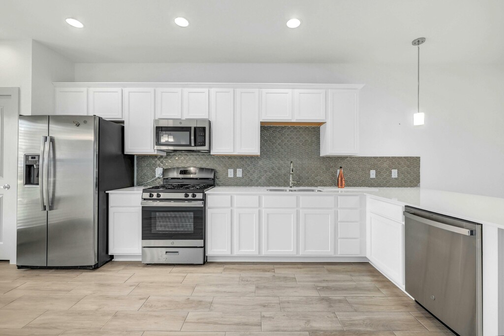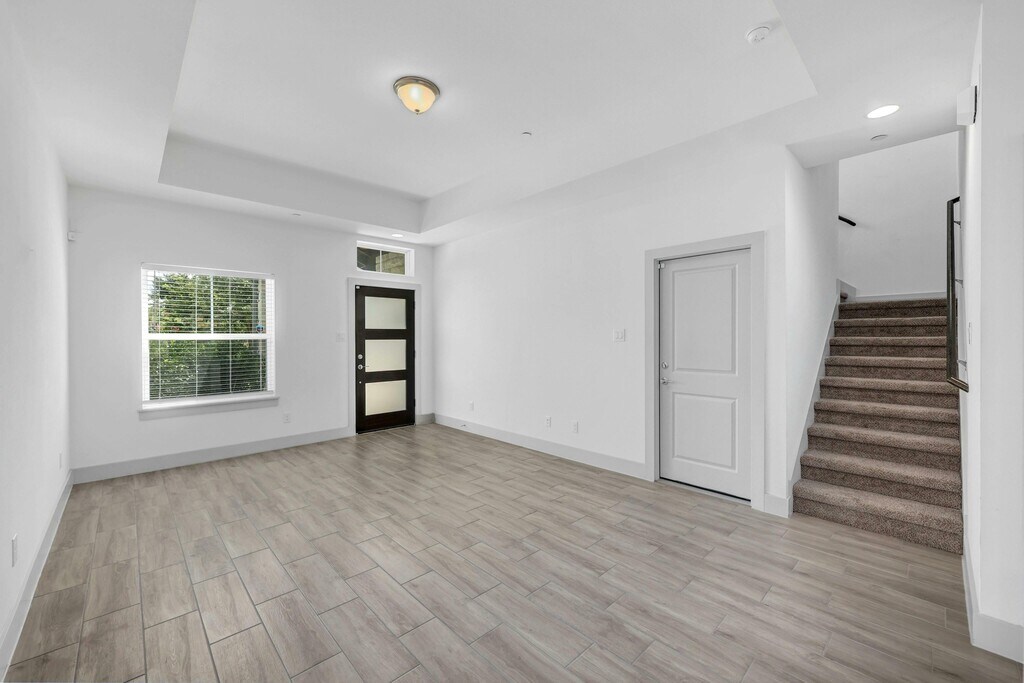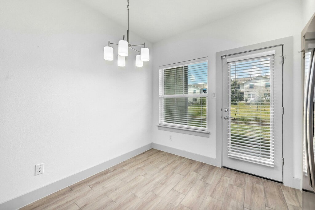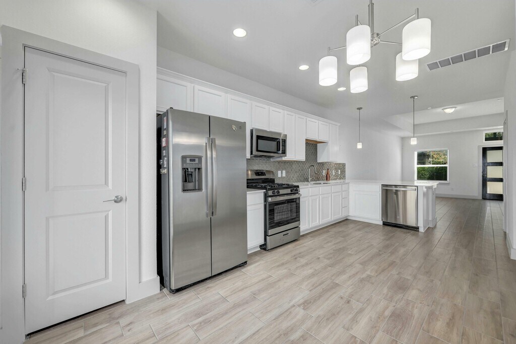 Step into this exquisite 3-bedroom, 2-bathroom condo where modern elegance meets comfort. As you enter, you're greeted by an abundance of natural light filtering through expansive windows, highlighting the high ceilings that amplify the sense of space and airiness.The kitchen boasts beautiful interior finishes with ample storage space including a pantry. A breakfast nook is included in the kitchen space and maximizes the space for entertaining parties of any size. The primary bedroom is located on the main level and offers a serene retreat with its own en-suite bathroom, providing privacy and convenience. The upper level houses two additional bedrooms with a bathroom upstairs. Outside, the condo presents beautiful curb appeal with tasteful landscaping and the convenience of an attached garage for convenient parking. Centrally located in Leander, this home is in close proximity to dining, shopping and entertainment. Commutes to Austin or the surrounding areas is possible with fast access to the 183 toll and 1431.