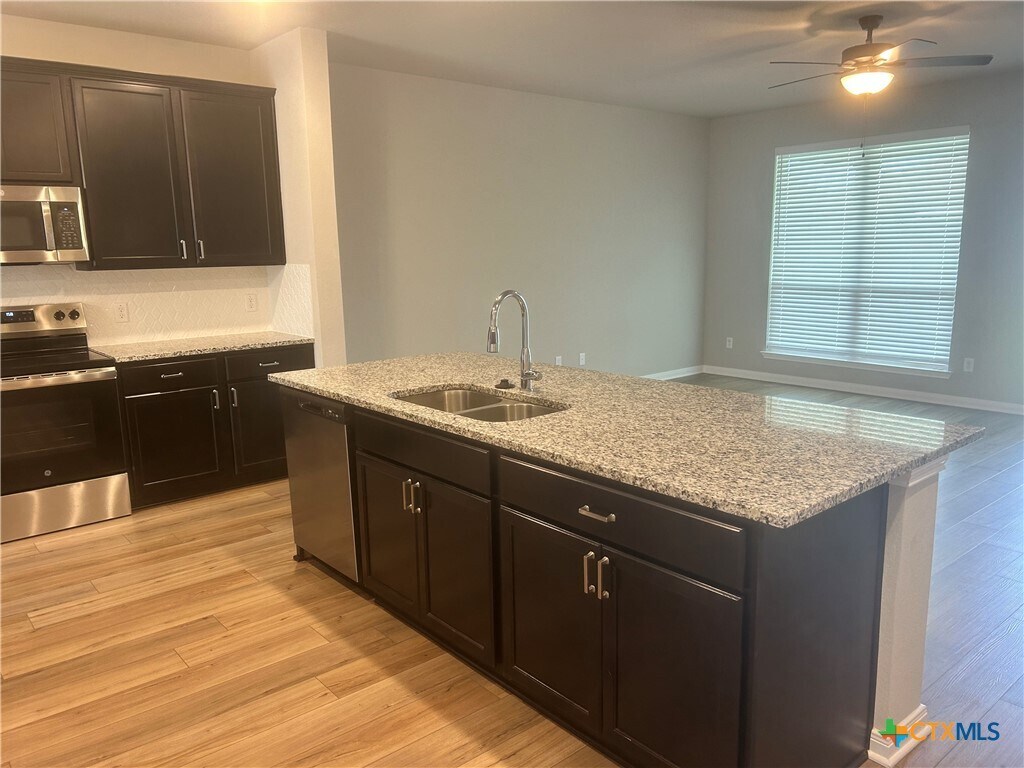 HALF MONTH OFF 1st MONTH IF START BY 10/15. Like New home in Temple's South Pointe. Convenient location minutes to Baylor Scott and White,VA,and Temple Mall. Open floor plan with vinyl floors. Separate dining room. Large island kitchen with granite counters and SS appliances,washer/dryer also included!. Covered patio and private backyard. Large primary bed and bath with double vanity,walk in closet,garden tub and separate shower. Small/ medium size dogs okay with deposit. Available NOW!