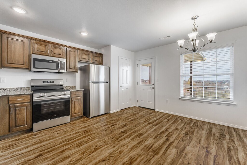 This 4 bedroom, 2 bathroom home boasts 1,543 sq feet 4BR/2BA floor plan. Beautiful dark stained cabinetry and flooring provide a sense of elegant living throughout the home. Attached 2-car garage and ample closet space in each room. These homes include: Full Blinds, Stainless steel appliances: Refrigerator, Range, Dishwasher, Microwave, Garbage Disposal.