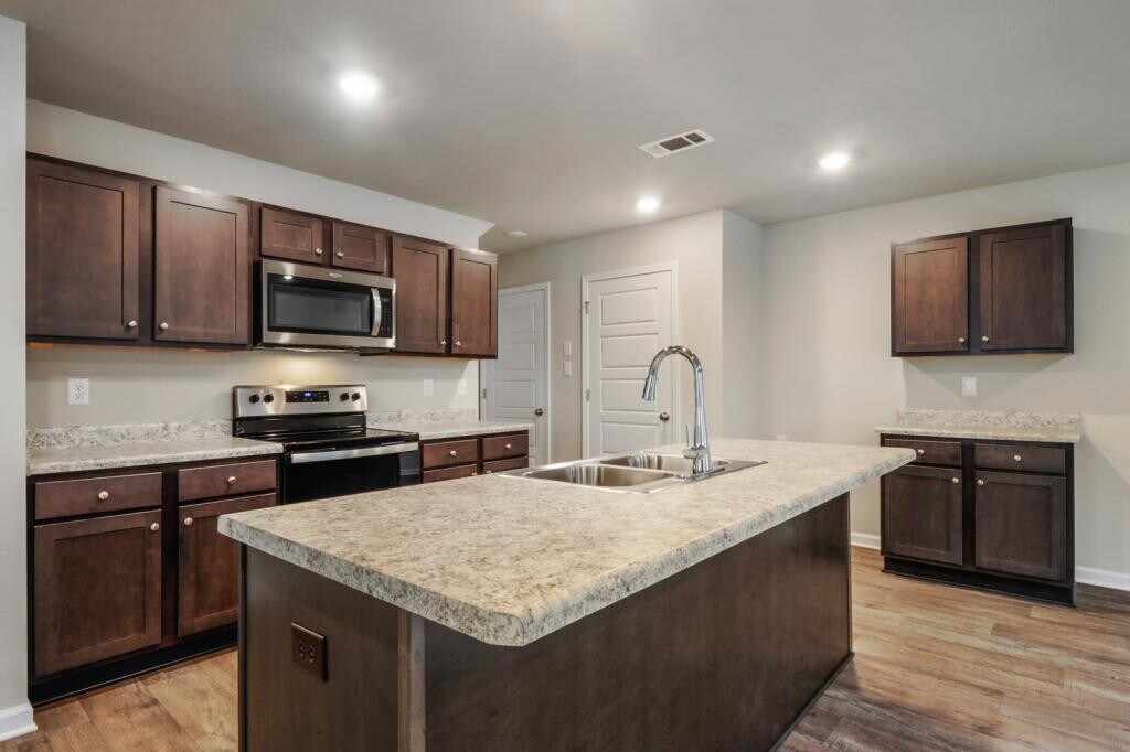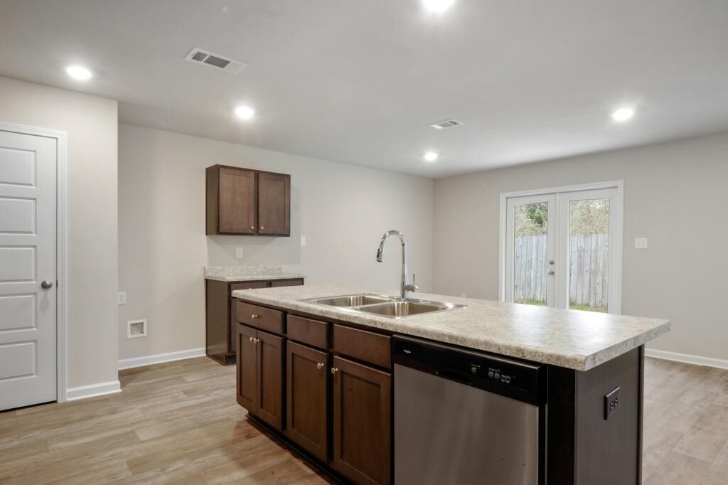 The Aisle plan is 4 bedrooms, 2.5 baths. Great room floor plan, living area, kitchen and dining with a half bath downstairs, 4 bedrooms 2 baths upstairs. Community is just south of I10 at the Ocean Springs exit, great central location, stainless steel appliances, LED lighting, smart home adapted and luxury vinyl floors.