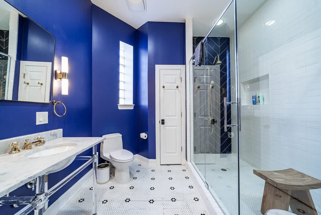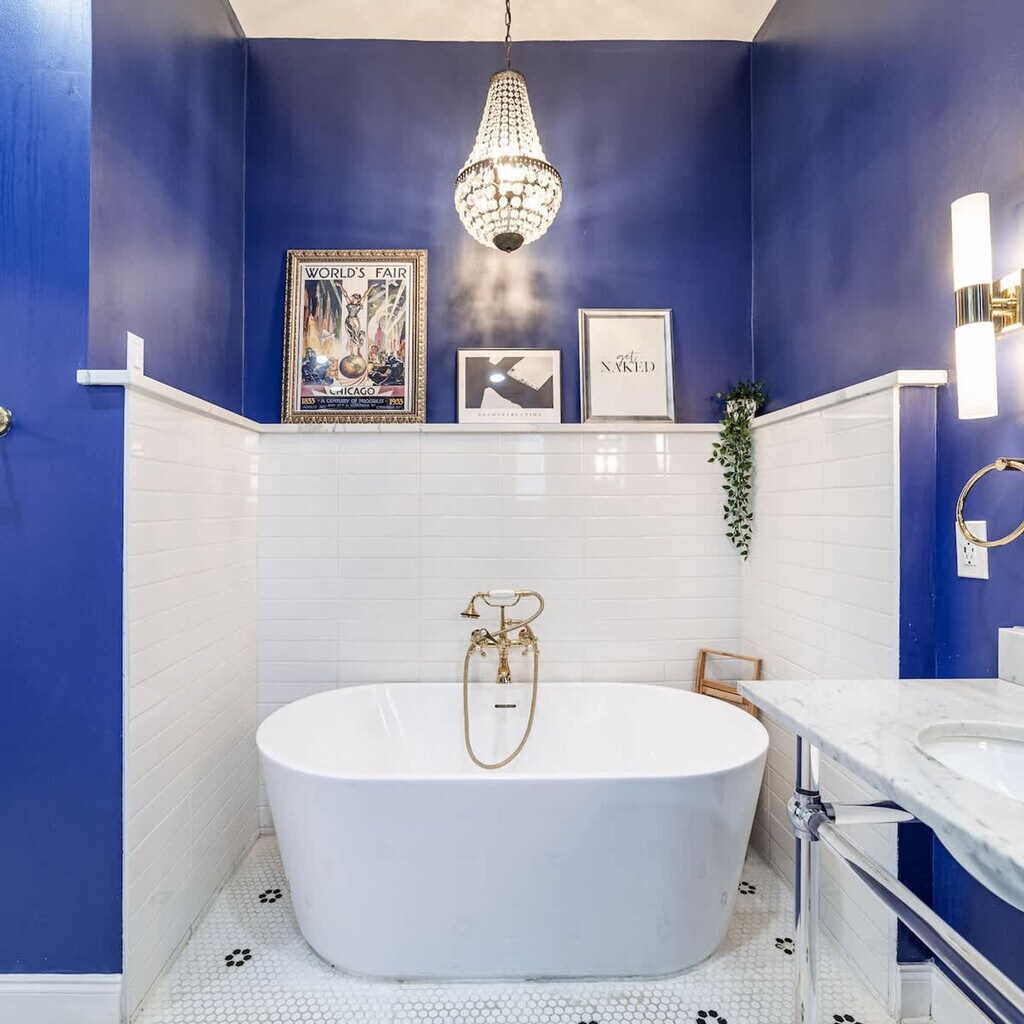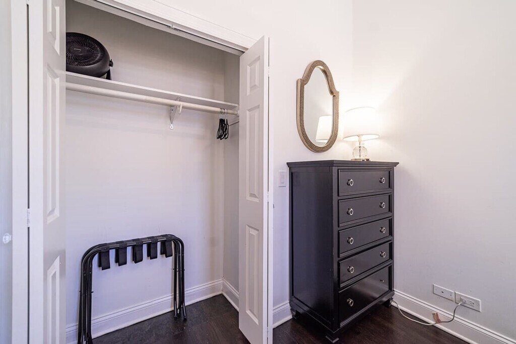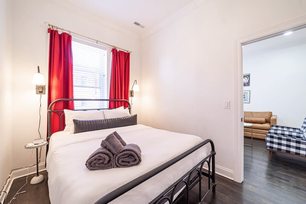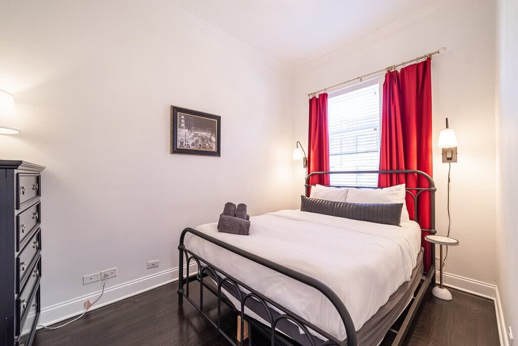 Feel at home in this spacious and art deco inspired 2-bedroom, 2-bath apartment located in West Town Chicago, one of the premier live/work spaces anchoring Chicago's desirable West Loop neighborhood. This loft features newly installed wood floors, 10-foot ceilings, designer baths, stainless steel appliances, quartz countertops, a beautiful dining area, and a large master bedroom with a glamorous en-suite bathroom. The apartment also includes an in-unit washer/dryer combo and a 48" smart TV. One dedicated parking space is included. If you need more parking, the street has many free street parking spots that are first-come-first-serve. For the easiest parking, it is highly recommended using a service to reserve a spot nearby before you arrive. Excellent public transit directions from this apartment to any point in the city are available via web search. The nearest intersection is N Hoyne Ave & W Grand Ave. Search for “N Hoyne Ave & W Grand Ave Chicago” in Maps, click the “Directions” button, then enter your point of interest. Check-in begins at 4 p.m. on your check-in date, and check-out is at 11 a.m. on your check-out date. [SI]
