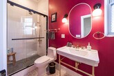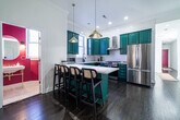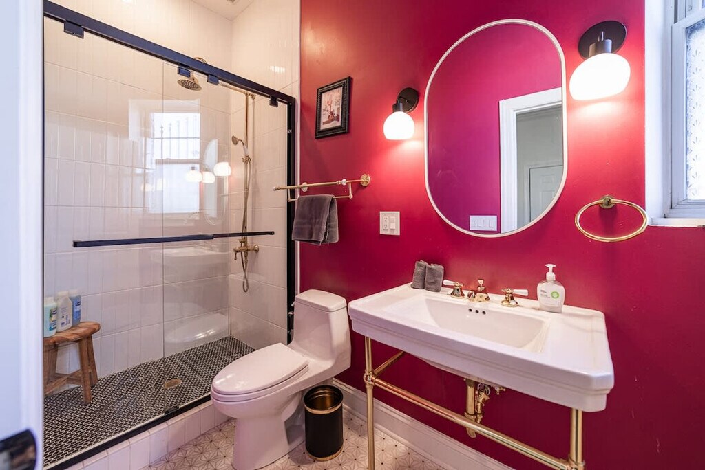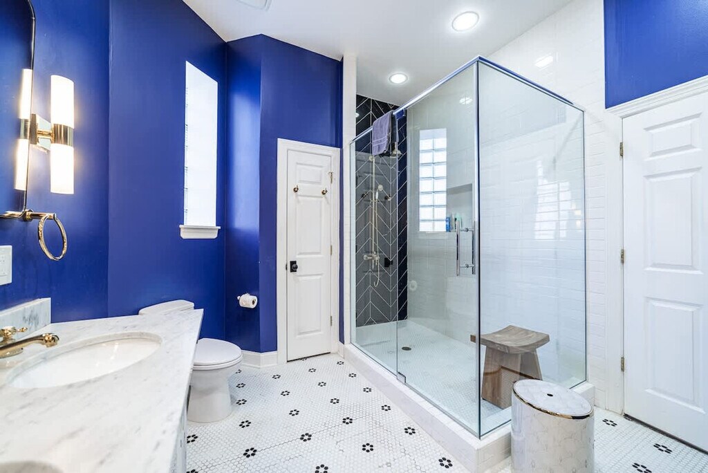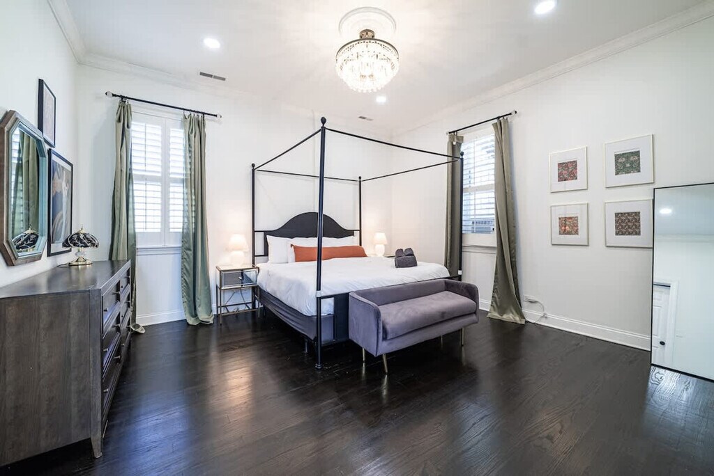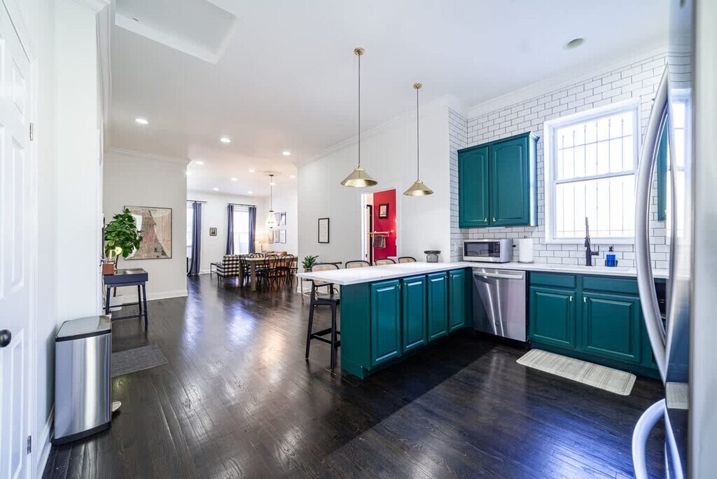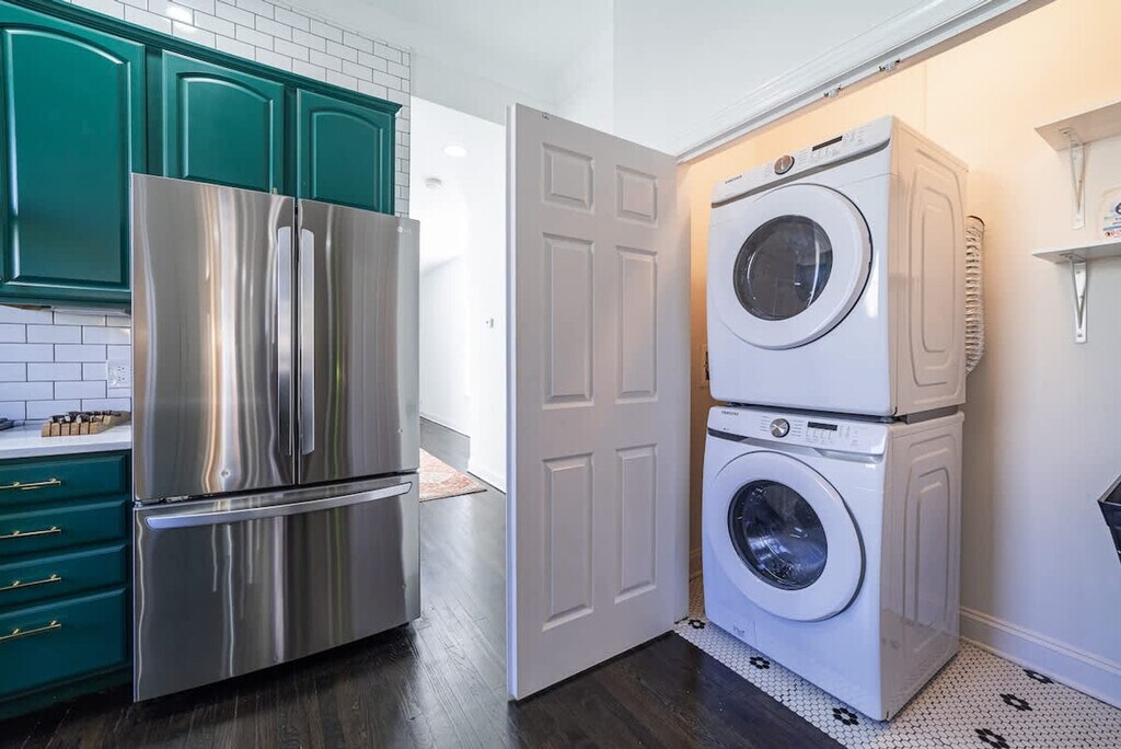 Feel at home in this spacious and art deco inspired 2-bedroom, 2-bath apartment located in West Town Chicago, one of the premier live/work spaces anchoring Chicago's desirable West Loop neighborhood. This loft features newly installed wood floors, 10-foot ceilings, designer baths, stainless steel appliances, quartz countertops, a beautiful dining area, and a large master bedroom with a glamorous en-suite bathroom. The apartment also includes an in-unit washer/dryer combo and a 48" smart TV. One dedicated parking space is included. If you need more parking, the street has many free street parking spots that are first-come-first-serve. For the easiest parking, it is highly recommended using a service to reserve a spot nearby before you arrive. Excellent public transit directions from this apartment to any point in the city are available via web search. The nearest intersection is N Hoyne Ave & W Grand Ave. Search for “N Hoyne Ave & W Grand Ave Chicago” in Maps, click the “Directions” button, then enter your point of interest. Check-in begins at 4 p.m. on your check-in date, and check-out is at 11 a.m. on your check-out date. [SI]