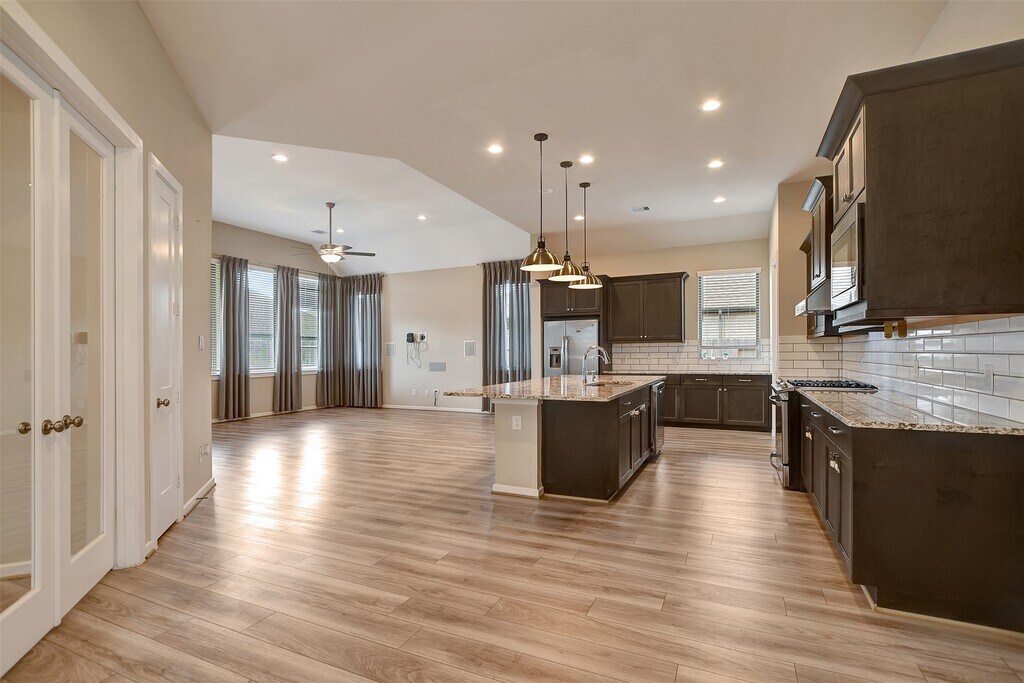 Welcome to this stunning modern home featuring soaring high ceilings,designer drapery,and luxury vinyl plank flooring throughout for a clean,elegant,and low-maintenance finish. The oversized kitchen island serves as the centerpiece of the home—ideal for cooking,gatherings,and family meals. With 4 spacious bedrooms plus a dedicated office that can easily be converted into a 5th bedroom,this home offers flexible living for any lifestyle. Smart lighting is installed throughout the interior and exterior,providing convenience,security,and elegance at the touch of a button. Enjoy incredible energy savings with solar panels. The property also boasts a large backyard,perfect for outdoor living,gardening,pets,or play areas. This home is the perfect blend of comfort,efficiency,and modern design. MLS# 30671469