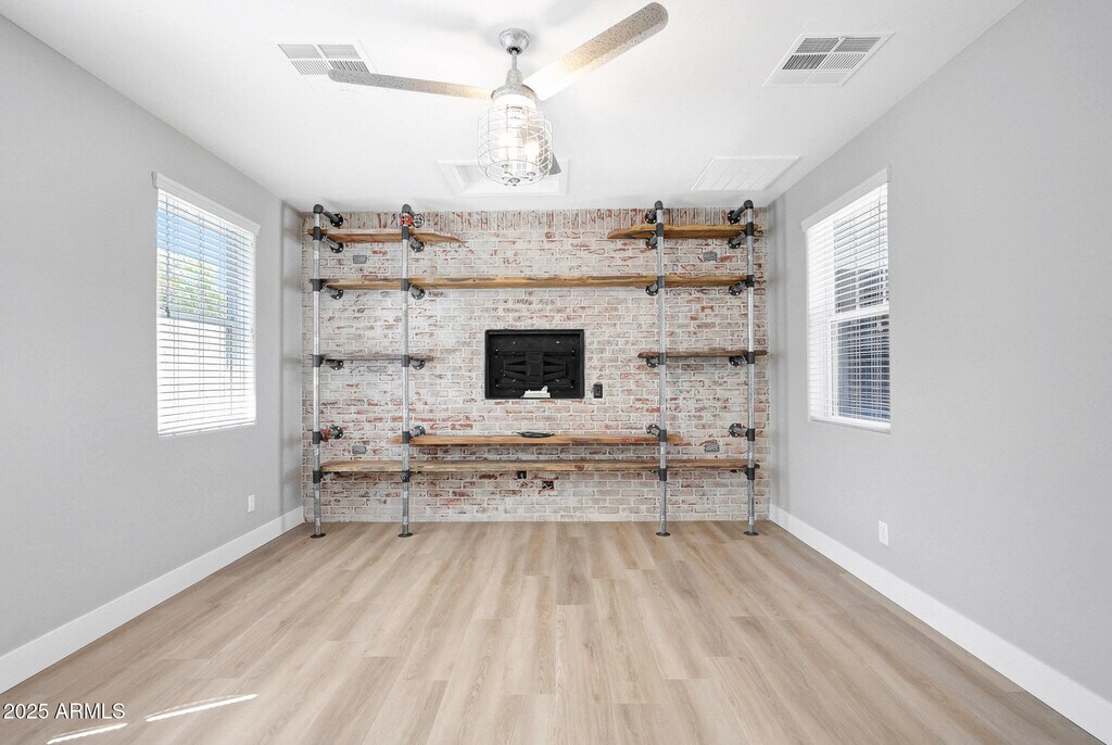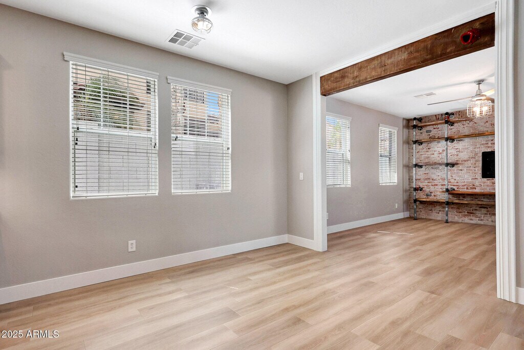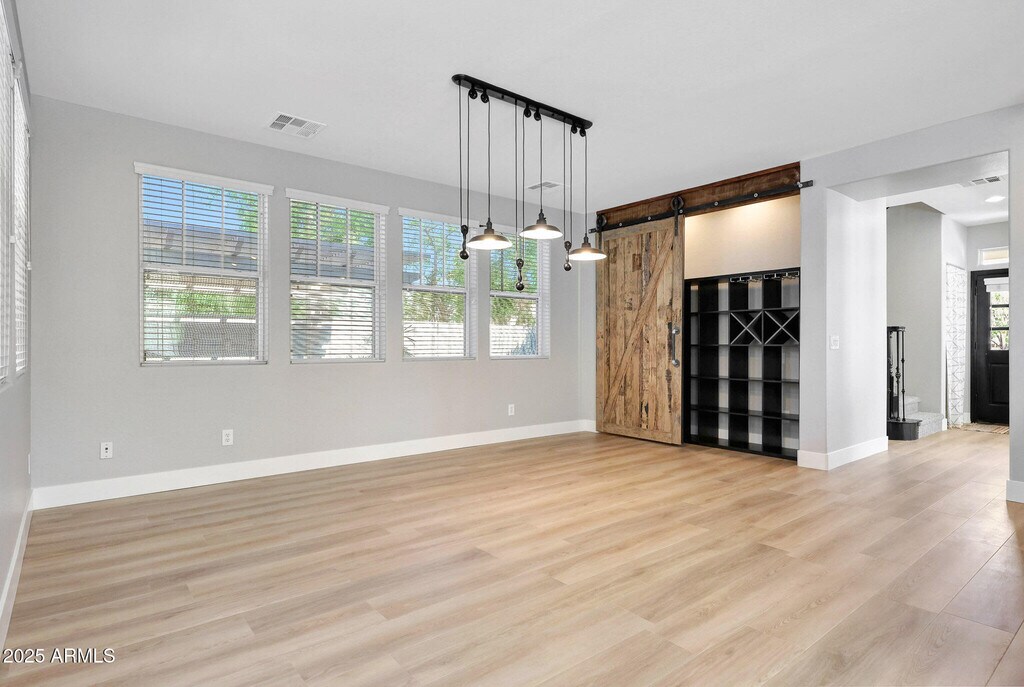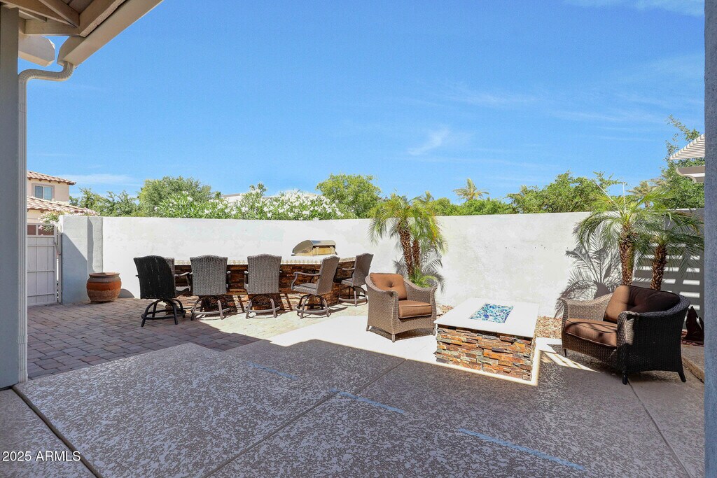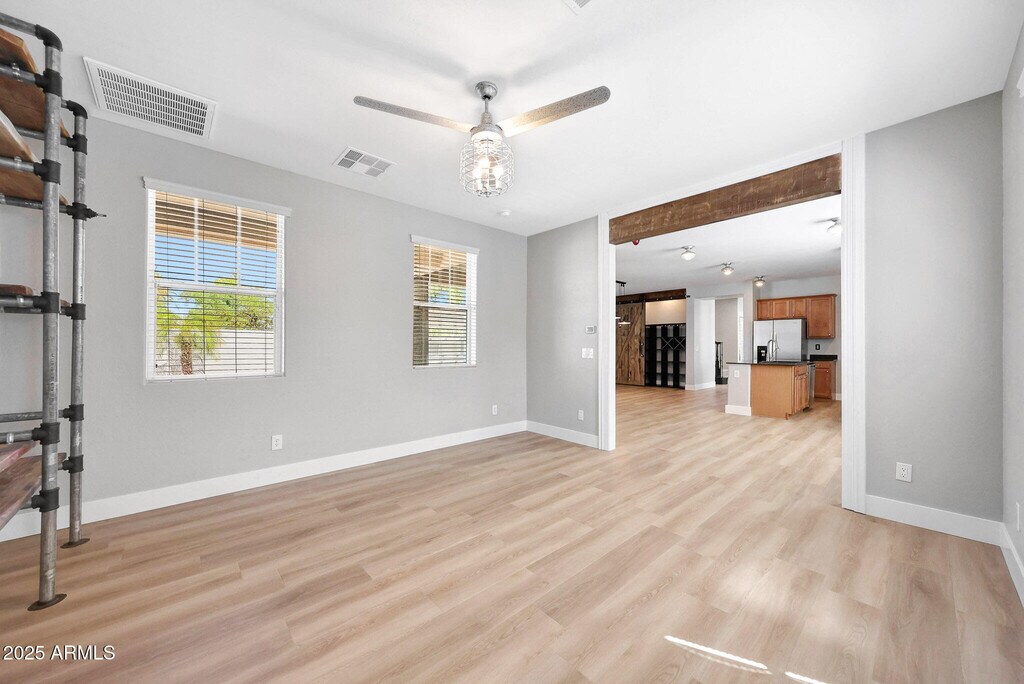 Beautiful rental in the heart of Verrado,ideally located less than a block from Main Street,Verrado Golf Club,and the Village Green. Enjoy the convenience of being within walking distance to gourmet dining,cafés,shopping,and community events. This home features an inviting front porch and a thoughtfully designed interior with an industrial rustic style,blending modern finishes with warm textures. The open kitchen offers stainless steel appliances and connects seamlessly to a spacious dining area highlighted by a sliding barn pantry door. The living/media room features custom wood beams,a brick accent wall,and industrial-inspired lighting throughout. Outdoor living spaces are beautifully landscaped and perfect for entertaining,with a lattice-covered heated spa,fire pit table,and built-in BBQ. The private balcony off the primary suite provides an additional retreat with scenic views. Pest control and landscape maintenance are included. This home is well-maintained and located near parks,schools,and recreational amenities,making it an ideal choice for families or anyone seeking a vibrant Verrado lifestyle.