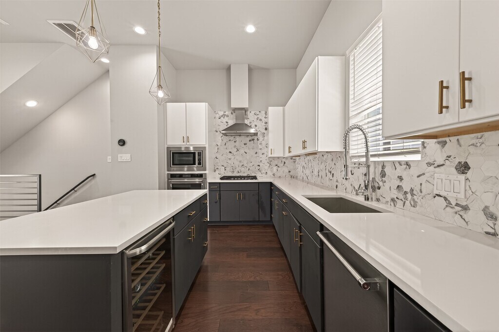Modern contemporary townhouse in a prime Medical Center location! This 3-bed,3.5-bath home offers 1,736 sqft of thoughtfully designed living space with an open-concept second floor perfect for entertaining. The sleek Arctic white quartz kitchen features soft-close drawers,a wine fridge,and seamless flow into the living and dining areas. Retreat to the spacious primary suite with a large walk-in closet and a beautifully tiled bath complete with dual sinks and a frameless glass shower. Enjoy outdoor living on the 19x10 rooftop deck with a gas connection—ideal for gatherings. Conveniently located near the Houston Zoo,NRG Stadium,and the Museum District,just 10 minutes to Downtown and 15 minutes to the Galleria,with easy access to 610 and 288. MLS# 36212212