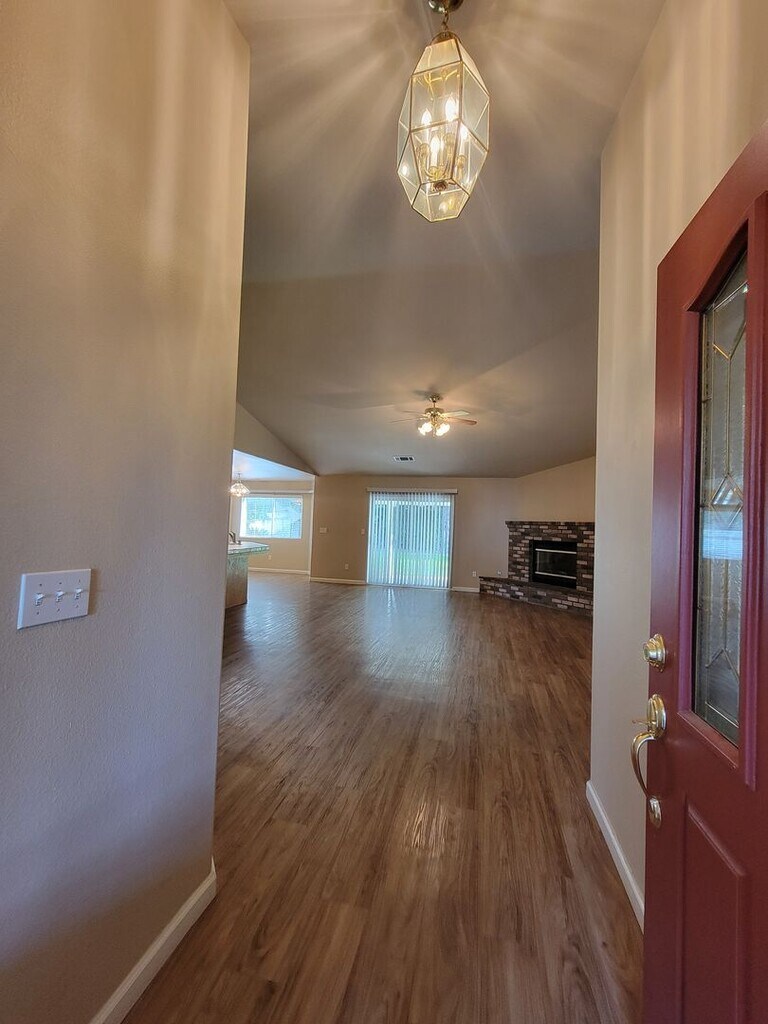 Welcome to this stunning 3-bedroom, 2-bathroom home located in the vibrant NE Visalia, CA. This property boasts a spacious layout with vaulted ceilings, enhancing the sense of space and light. The bedrooms are carpeted for your comfort, while hard surface flooring in high traffic areas ensures durability and easy maintenance. The kitchen is a cook's dream with a large pantry and a built-in microwave for your convenience. The master suite features a large walk-in closet, providing ample storage space. Step outside to a covered patio, perfect for outdoor dining or relaxation. The backyard also includes a shed, offering additional storage or workspace. This home combines functionality and style to create a comfortable living environment. Don't miss out on this gem in NE Visalia!