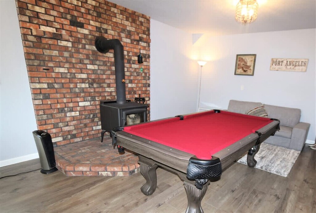 Feel at home in this fresh 3-bedroom, 2.5-bath home on the west side of Port Angeles. This home has been recently remodeled and offers views of the Strait of Juan de Fuca. Relax in the warm and inviting living area with comfy furniture, cable TV, Netflix, and free Wi-Fi. The well equipped kitchen includes a dishwasher, pots and pans, range, oven, microwave, and fridge. The deck is accessed off the 2nd floor and includes patio furniture and a small propane grill. There is also a rec room on the lower level that comes with a new pool table and wood stove. A smaller bed and a bunk bed are available for children. Located in a quiet suburb on the west part of Port Angeles, this home is close to the Olympic Discovery Trail. It is a short 15-minute drive to the Salt Creek Rec Area and less than 30 minutes from Lake Crescent. Olympic National Park is only 40 minutes away, and the Olympic Discovery Trail is approximately 18 minutes away. Pets, smoking, fireworks, and events are not permitted. Unauthorized pets will incur a $250 additional cleaning fee and you are subject to immediate eviction. If pet droppings are found on the property there will be an extra charge of $35 per pile. Renters who do not comply with the non-smoking policy may be asked to leave without a refund and may be assessed with a $300 smoke removal fee, charged to the renter’s credit card. Additional guests, beyond what was agreed on, is not permitted. Tampering with outside cameras is cause for immediate cancellation of the reservation with no refund. [SI]
