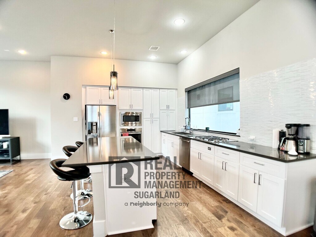 Exquisite home that has everything..Literally! Its right on I-10, 5 mins away from Downtown Houston, Memorial Park is right across the street, a Baseball field in front of the house, Great view from the balcony on the second floor with Downtown fireworks view, everything is close by. This home is three story, has 3 bedrooms and 3.5 bathrooms, open floor plan, it features High Ceilings with natural light through the living room, kitchen and dining, every room has its own full bathroom. The kitchen is just gorgeous and spacious with huge island with granite counter tops and Stainless steels appliances ( Including refrigerator and wine fridge). Washer and dryer are included. You will feel that you're on vacation every day! **All Real Property Management Sugarland residents are enrolled in the Resident Benefits Package (RBP) for $45.00/month which includes renters’ insurance, HVAC air filter delivery (for applicable properties), credit building to help boost your credit score with timely rent payments, $1M Identity Protection, move-in concierge service making utility connection and home service setup a breeze during your move-in, our best-in-class resident rewards program, and much more! More details upon application.