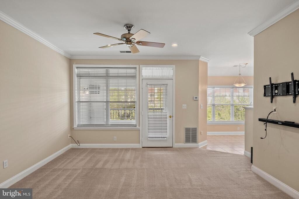 Great opportunity to lease a top-floor condo in the sought-after Waverly Woods community. This unit features two bedrooms, two full bathrooms, and a versatile den/office equipped with a built-in desk and cabinets, perfect for remote work or an additional living space. The primary bedroom offers a walk-in closet, a double-sink vanity, and a walk-in shower for your comfort and convenience. The upgraded kitchen is a highlight, boasting elegant granite countertops, newer stainless steel appliances, and a bright breakfast area with large windows. The spacious living room seamlessly opens to a bright and airy screened-in porch, providing an ideal spot for relaxation. Further enhancing this offering, the unit includes a secured storage room and one assigned covered parking space located in the lower garage, with direct elevator access into the building for ease. Its prime location offers exceptional convenience, being close to a variety of restaurants, shopping centers, electric car charging stations, and banks. Commuters will appreciate the easy access to major routes for both Baltimore and Washington D.C.