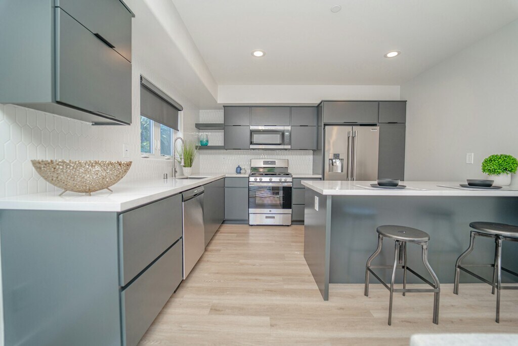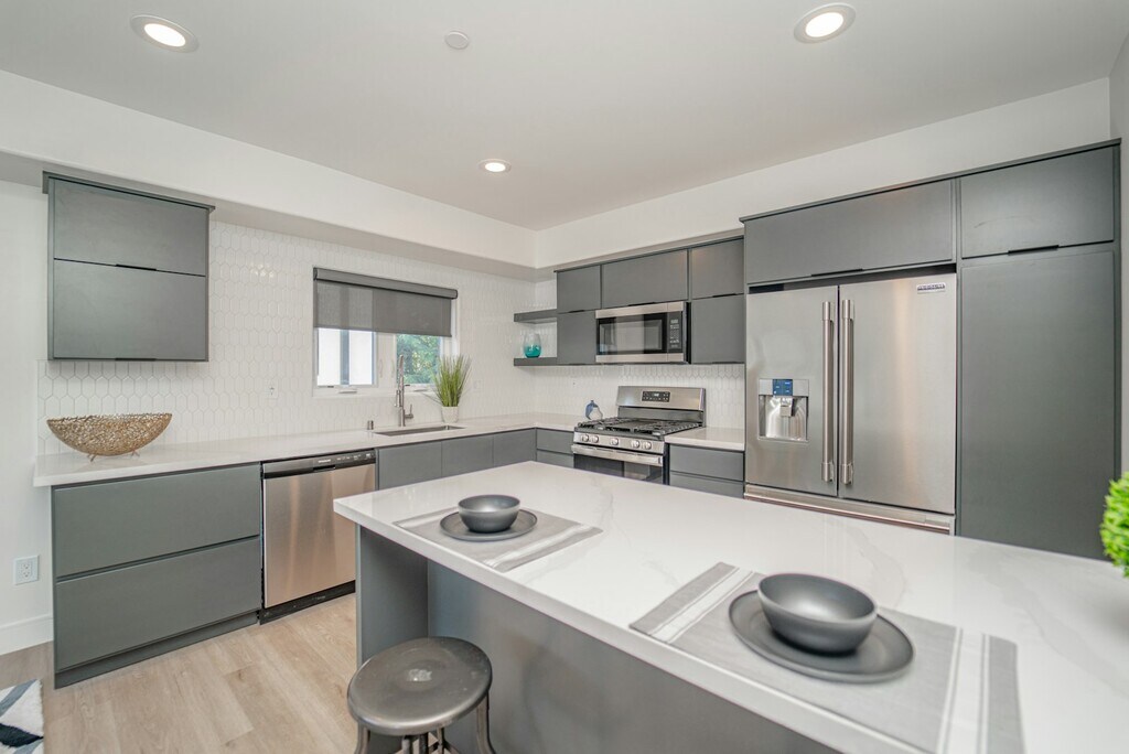 This 3-story Single Family Duplex (SFD) 4 bed and 5 bath unit, situated in Hollywood Dell Los Angeles, is ideal for tenants in search of modern living with outdoor space and in a very walkable and quiet area. This unit has larger than average bedrooms, large enough to fit a desk or working area and still be very comfortable as a bedroom. This property has a coded automatic entry gate, a smart front door lock with coded entry making coming home a breeze, and an active exterior security camera system with 24-hour recording, which provides convenience and security. The landscaping on the property gives the property a nice hint of color and curb appeal. This particular unit was designed with ample open space, dining, and living rooms, including a luxurious island and lots of counter space, which are perfect for gatherings. The bedrooms were designed to be large and with lots of closet space and natural light. This is truly a must-see, one-of-a-kind unit with lots of glass in a very sought-after area. We carefully chose every detail of this property to keep it in harmony with our new way of seeing the rentals industry, like paint colors, landscaping, and customized and handmade murals. The unit includes: ***Modern white and dark grey cabinets with soft-close hardware ***Stainless appliances (Microwave, stove, dishwasher, refrigerator) ***Quartz countertops ***Mosaic modern tile backsplash ***Modern tiled bathrooms with niches and bench (showers) ***8.5' Ceilings ***LED Recess Lighting ***Laminate wood flooring ***In-unit washer and dryer included ***Central AC and Heat with a NEST control thermostat ***Attached 2-car space garage parking (cars MUST fit) ***4 bedrooms have en-suite bathrooms ***Large windows and lots of natural light ***Roller shades ***Coded entry motorized door ***Access points making wifi internet from the provider a breeze ***Prewired ethernet cabling ***Exterior security cameras ***balconies on 2do (living room) and 3rd floor (master bedroom) Do NOT Submit an Application from this website; please email the leasing agent to request an application package or to apply, use our online application process.