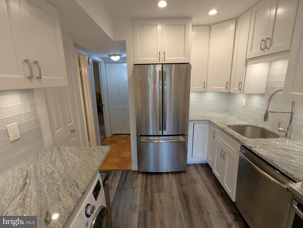 Fabulous 2BR 1.5 BA mid-century modern condo w/large balcony in Americana Finnmark community has 1047 sf and RENT INCLUDES UTILITIES!! 2nd floor walk-up has open layout LR/DR, totally updated kitchen with in-unit laundry, 2 spacious bedrooms, & generous closet space. Parking in community lot is convenient, unassigned, & included in your rent. Located next to Forest Glen Metro station (red line), I-495/Beltway Exit 31 w/multiple commuter routes along Georgia Ave corridor, & Holy Cross Hospital . Americana Finnmark community features resident-only tennis courts, recreation/picnic areas, tot lots, fenced pet 'park', car-washing station, & seasonally open pool. Available NOW for 12-60 months, this property is a gem not to be missed! The landlord will consider one (1) small pet (cat or dog, 25 lbs or less, case by case) with additional deposit and/or pet rent. Online application $50/adult.
