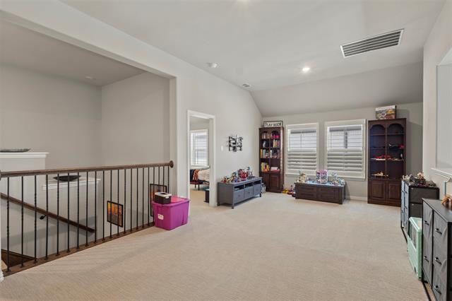 **Washer, Dryer, Refrigerator included!** Stunning 2021 built west-facing Meritage home in the desirable Oak Grove neighborhood, just minutes from Lake Lewisville. This spacious 4-bedroom, 3.5-bath home offers a functional layout with multiple living areas. The main floor features an open-concept kitchen with a large island, walk-in pantry, and dedicated dining area—ideal for daily living and entertaining. The primary suite is downstairs with a beautifully customized walk-in closet. A private office, flex space (great as a den or reading nook), and a guest half-bath complete the main level. Upstairs includes three secondary bedrooms, two full baths, a large game room, and a separate media room—plenty of space to relax or work from home. Move-in is a breeze with all major appliances included: gas cooktop, electric oven, built-in microwave, dishwasher, refrigerator, washer, and dryer—just bring your belongings and start living on day one. Foam insulation helps lower utility bills and maintain year-round comfort. Plantation shutters on every window add style and energy efficiency. Additional highlights include a mudroom, spacious laundry, 2-car garage, and a prime location close to highways, shopping, dining, and top-rated schools.