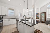 Welcome to The Serene Summerhouse,a beautifully designed two-story townhome in the highly sought-after Bridgeland community. Perfectly positioned near the lake,this unique split-level floor plan places the main living areas upstairs to maximize the stunning views from the private second-floor balcony. The home offers 3 bedrooms,2.5 bathrooms,and a versatile flex space,along with a chef-inspired island kitchen featuring stainless steel appliances. Enjoy peaceful mornings or relaxing evenings overlooking the water from both the covered back patio and elevated balcony. Residents of Bridgeland enjoy an unmatched lifestyle with scenic nature trails,lakes,pools,parks,and countless outdoor amenities. With a 2-car attached garage and yard maintenance included,this home blends comfort,convenience,and resort-style living. MLS# 49175853