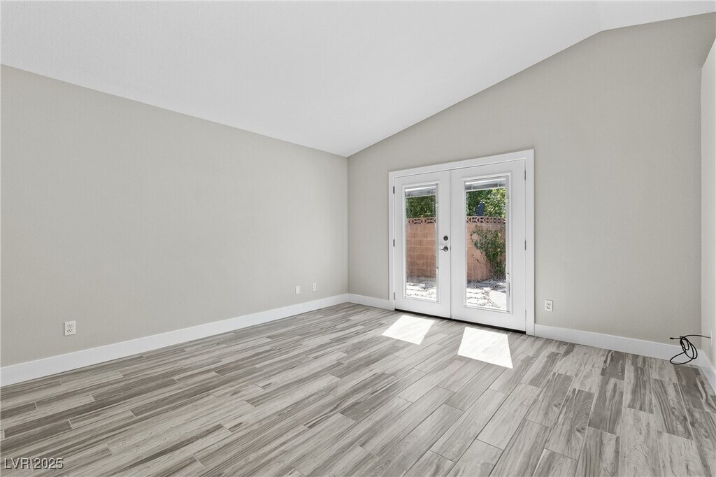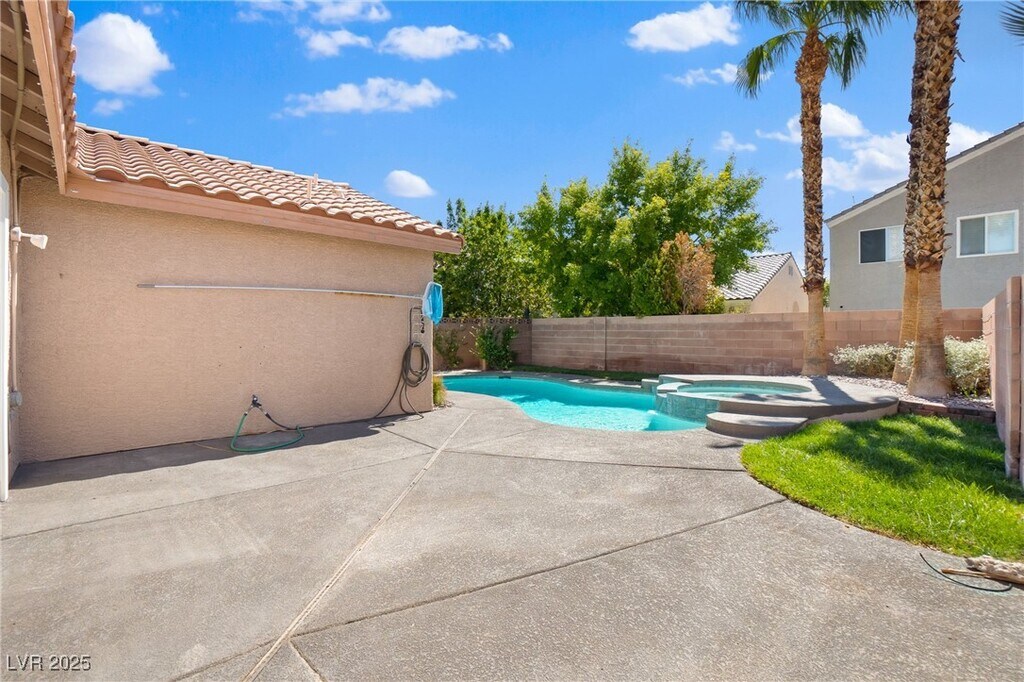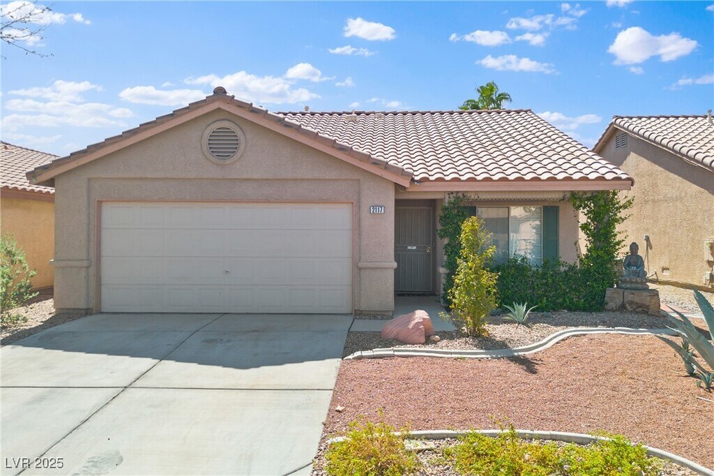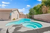 Welcome to this lovely home in North Las Vegas, NV! This stunning 1-story, 3-bedroom, 2-bathroom home with a POOL & HOTTUB, is nestled in a gated community, offering a perfect blend of comfort and style. The home features a 2-car attached garage with ample storage, new ceramic tile throughout, and upgraded French doors in the primary bedroom and a large walk-in closet. The kitchen is a chef's delight with stainless steel appliances and recessed lighting. The primary bathroom boasts dual vanities and sinks for added convenience. Step outside to a beautifully landscaped backyard with grass, a private pool, and a hot tub, perfect for entertaining or relaxing. The front yard features desert landscaping for easy maintenance. The community offers a pool, park, and walking trails for your enjoyment.