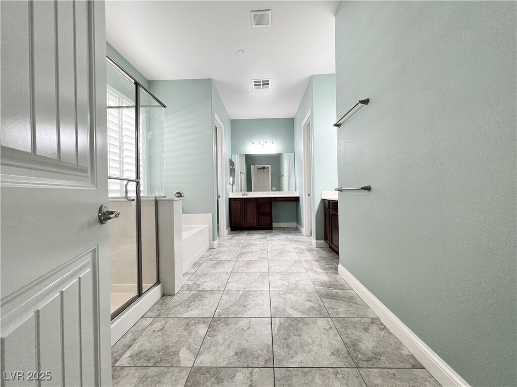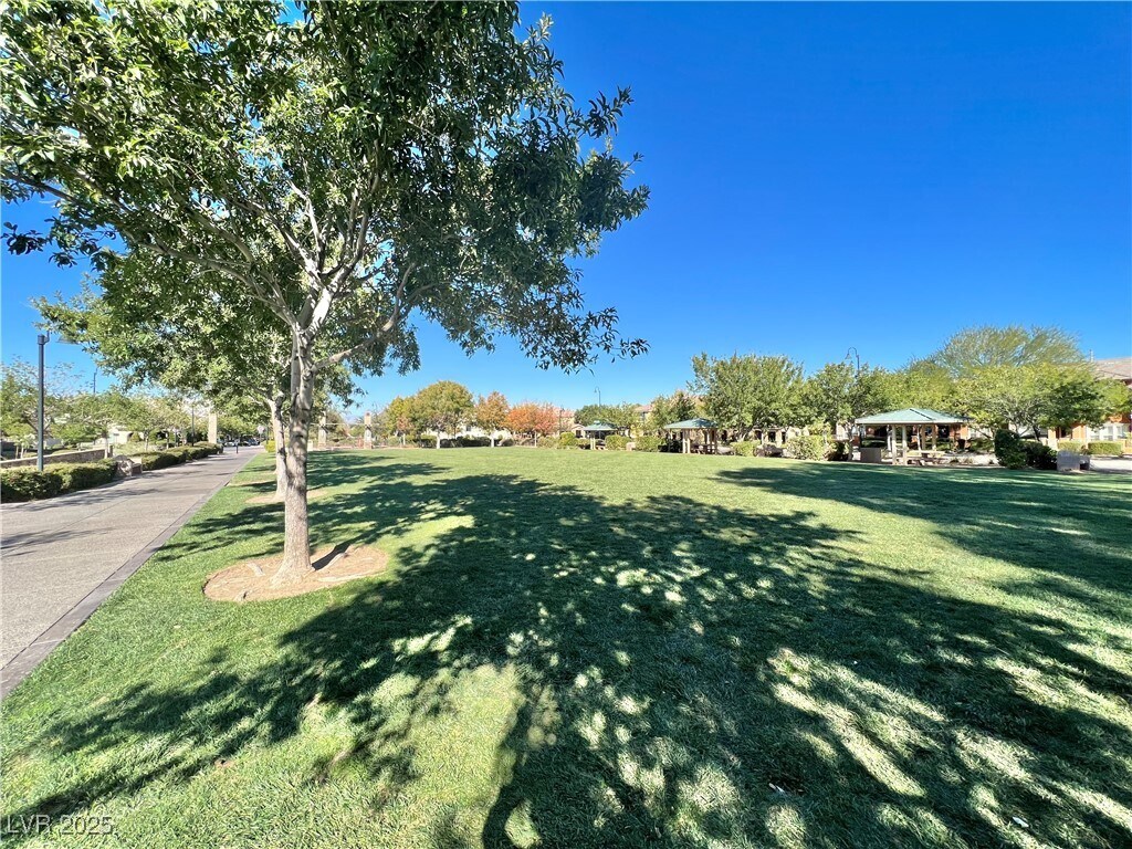 Beautiful single story house with 3BR+DEN+2.5BA & located at growing Inspirada Master-Plan Community featured multiple parks, pools, sports fields & walking trails; House with bright and open floor plan, 10 ceiling and large formal dining room; Kitchen has island with breakfast bar, maple cabinets, built-in double ovens and cooktop, and double French door to backyard; Primary suite has large bedroom with double French doors to access backyard, large bathroom with separate tub and shower, 2 vanities and walk-in closet; Backyard has full length covered patio, Iron fence and amazing view; no neighbor right behind; In addition, house with two tone paintings, shutters, ceiling fans, video ring bell and long driveway; Also house with very convenient location: next to Elementary school and park and close to I-15 freeway, Raiders practice facility, M casino & Costco; Inspirada parks with volleyball, basketball, tennis, soccer, skate, bocce ball, picnic areas, splash pads, pools and dog park"