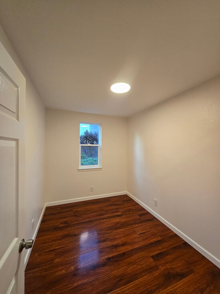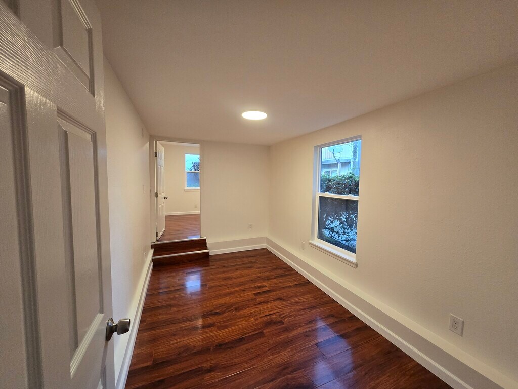 2 bedroom 1 bathroom unit in a duplex available with open living room + dining room layout. First bedroom is approximately 11'x11' (room is not furnished, the bed and dresser are to give reference of the room size) and the second bedroom is 7'x11' with a 7'x9' den attached which can be used as the bedroom or office. The house is located in West Oakland, the NL bus that goes to the SF Sales Force Transit Center is right around the corner. The closest BART stop is 19th Street, which is about a 10 minute walk. The closest freeway is 980, with 880 and 580 near by. Laundry unit is onsite and one onsite parking spot is available. There's a sweet backyard for you to relax and garden if you have the green thumb. Well behaved pets are welcomed with $300/pet deposit. Utilities is shared among the entire duplex, averaging about $150/person/month. The credit check fee is $40/applicant paid directly to the credit check agency. Please drop a message to share a little bit about yourself if interested!