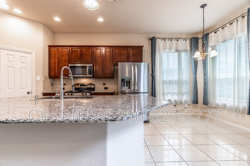 Welcome to this spacious 2-story home featuring 5 bedrooms, 3 baths, including a downstairs bedroom and full bath. Open-concept layout with multiple living areas and an upstairs loft/game room. The open-concept kitchen features new stainless steel appliances, granite countertops, and ample cabinet space. Soaring ceilings enhance the home’s bright, airy feel, while solar panels help keep utility costs low—with near $0 power bills. Additional features include curtains in every room, water softener system, and a private backyard with no rear neighbors. Conveniently located near Loop 1604, Hwy 151, and 410 with easy access to shopping, dining, and major employers. A perfect balance of space, efficiency, and prime location. Beware of rental scams! Verify listings for accuracy, don't wire any money, and apply through official channels only, not on 3rd-party websites.