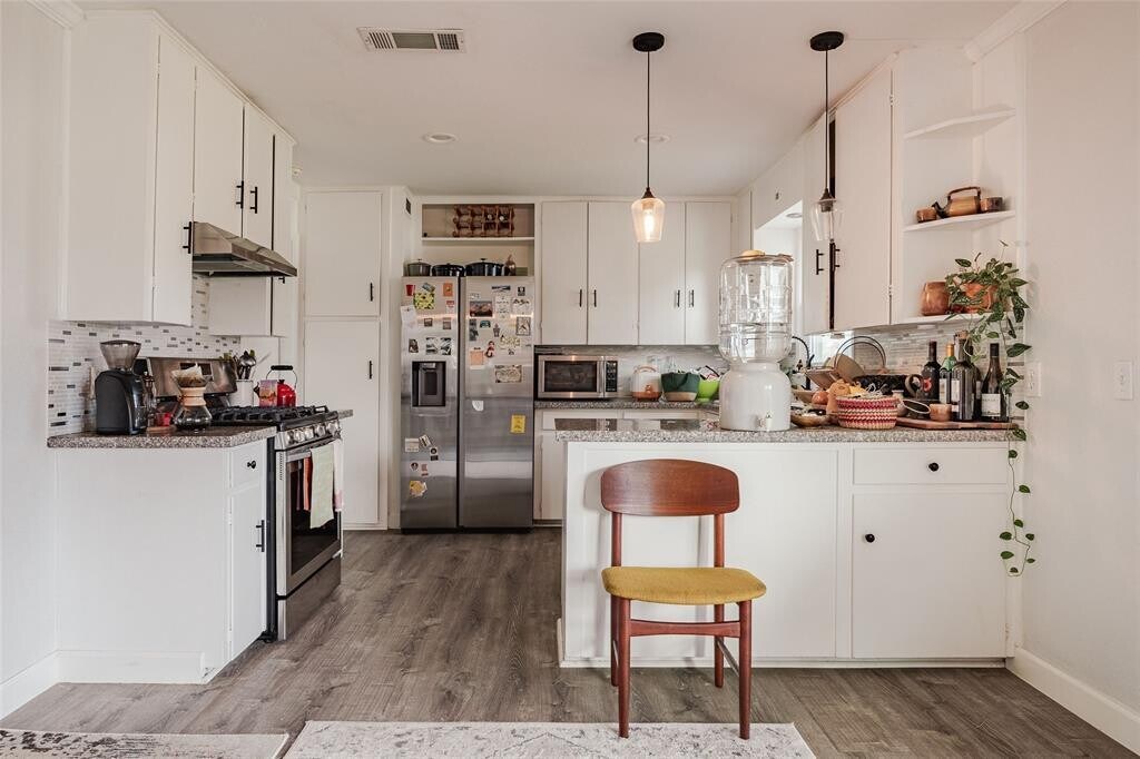 Fantastic mid century bungalow in University Hills :: This wonderful 3 bed, 2 bath home has an excellent open concept floor plan. :: The home has been thoughtfully updated with vinyl plank floors, bathroom updates, vinyl windows and stainless steel appliances :: Home includes washer/dryer and refrigerator :: Great backyard and pet friendly :: Location is excellent to Mueller and downtown Austin.