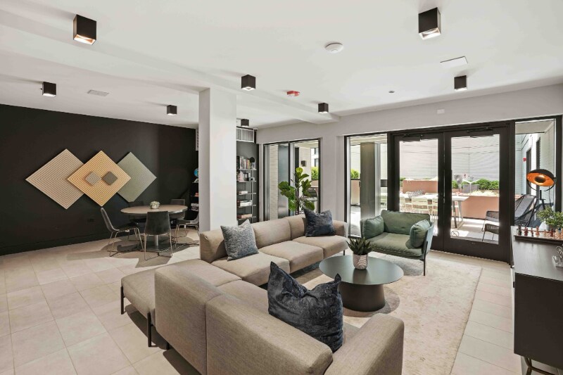 Property Id: 1305595 An eye-catching new architectural gem in Bucktown added 298 luxury apartments near the Chicago River in 2021. This commuter-friendly area has quick access to I-94 expressway and the Metra Train Clybourn station. The apartments feature pebble oak flooring, quartz countertops, stainless steel appliances, gas range, grey matte cabinets, Moen matte black fixtures, tall ceilings, large windows, and in-unit front-load washer and dryer. Upscale amenities offer great spaces to relax and entertain, including on outdoor resort-inspired pool, sun deck and resident lawn with views of Downtown Chicago. Keep active in the fitness center and make new friends hanging out in the clubhouse lounge with chef kitchen. Bike storage, package service, and a business center are also conveniently available. Cats and dogs are allowed with breed restrictions and weight limit. Parking is available with additional fees.