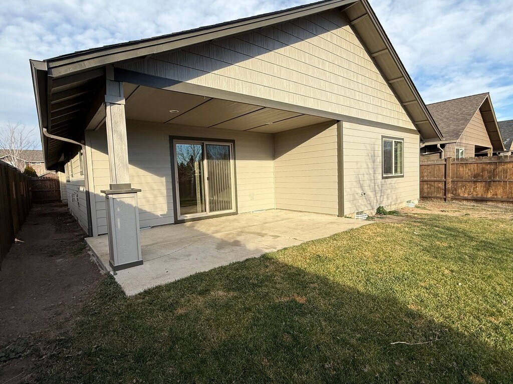 This spacious 4-bedroom, 2-bath home is tucked into a great Bend location, less than a 10-minute drive to downtown and the Old Mill District. The updated kitchen includes a large island, pantry, and breakfast bar seating, and flows easily into the dining and living areas, making the space feel open and connected. A gas fireplace adds cozy charm, especially on winter days when you can watch the snow fall through the sliding glass door leading out to the fully fenced backyard and covered patio. The primary bedroom is impressively large with plenty of closet space, and the three additional bedrooms are also comfortably sized. An attached garage and air conditioning adds everyday convenience, rounding out a home that offers both space and comfort in a location that’s hard to beat.